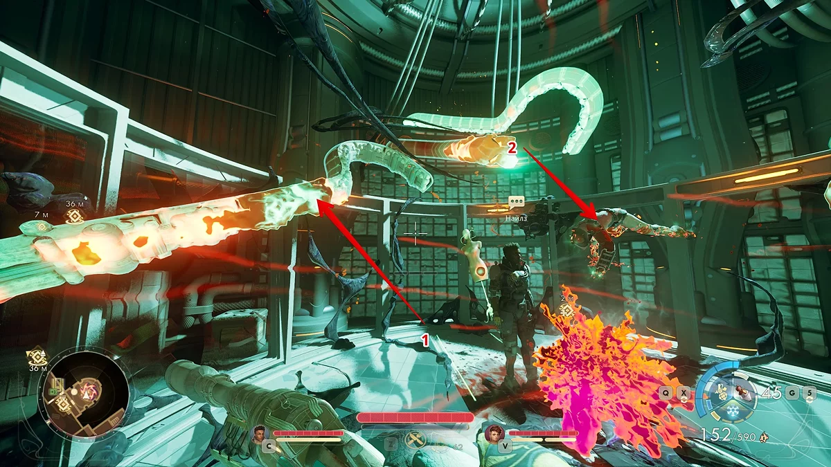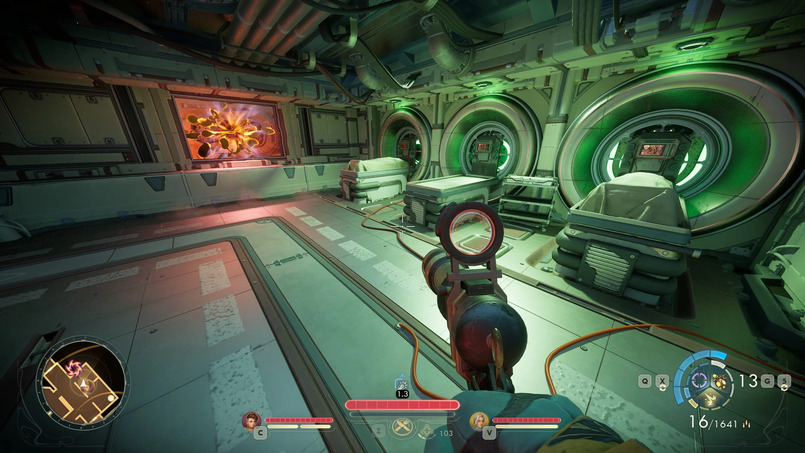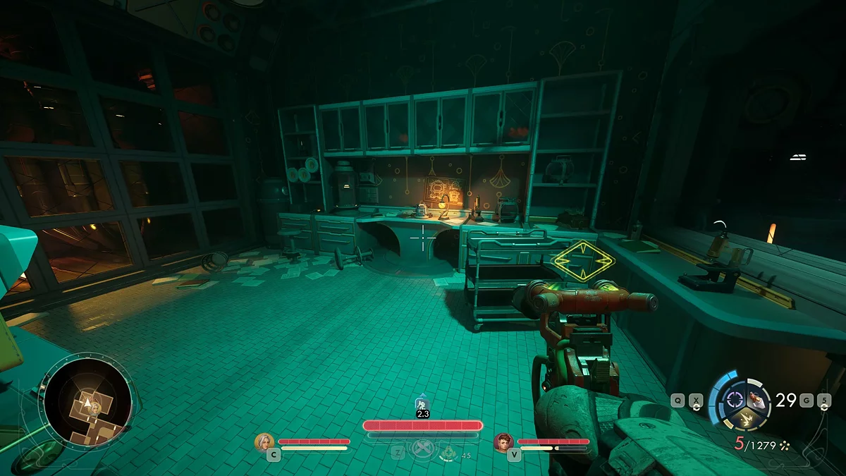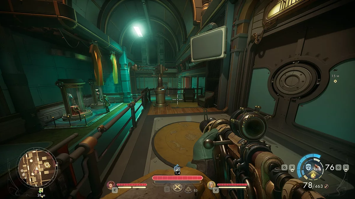 По научной палубе бродят ученые. Используйте навыки «Речи», чтобы усыпить их бдительность. Найдите рядом с разломом тело и соберите образец тканей. Войдите в противоположную комнату и воспользуйтесь центрифугой со стола, чтобы получить ценную информацию о разломах.