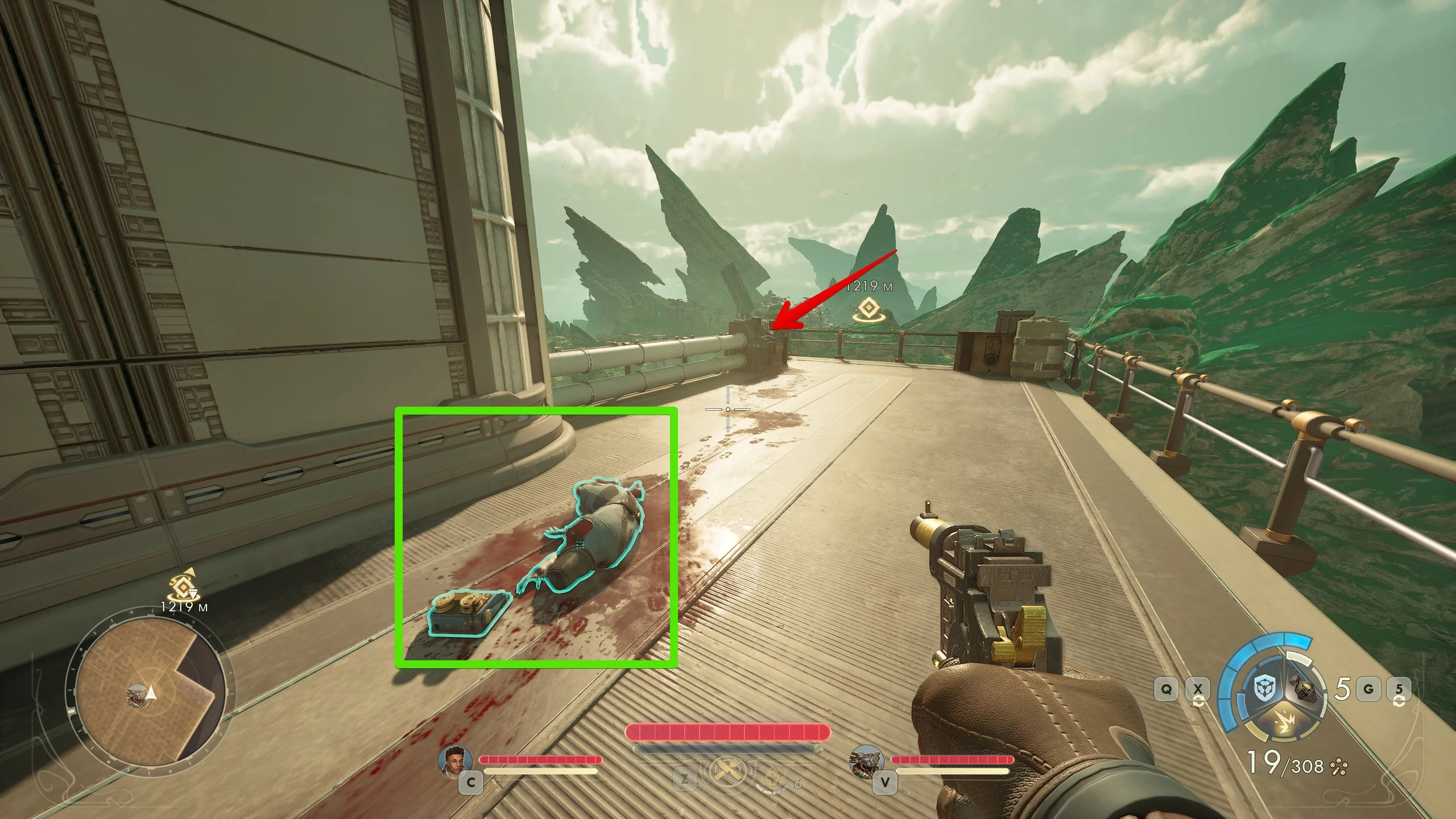 Подойдите к платформе, с которой упадёт мужчина. Подберите с его тела П.И.П. устройство, позволяющее делать двойной прыжок. Люди с верхотуры попросят о помощи, спасать их не обязательно, поступайте как хотите. В рамках текущего квеста подберите с конвейера отрубленную руку, которая принадлежала Иде, чтобы использовать конечность в качестве доказательства её смерти.