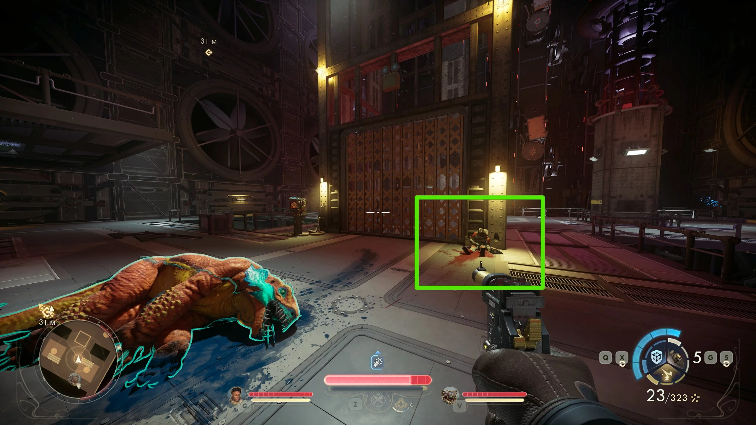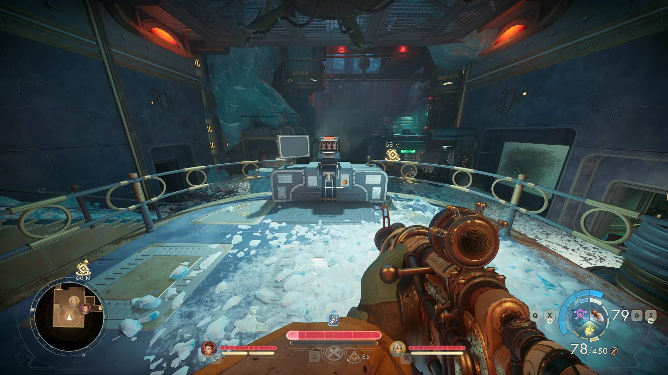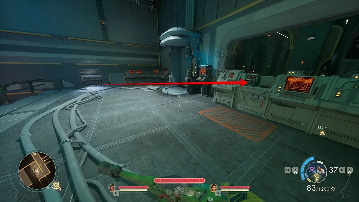 Покиньте комплекс и двигайтесь на юг в блок теплообмена, заселенный морозными крабнями. Откройте доступ с помощью электронного ключа и отыщите внутри панель управления насосом. Его нужно починить с помощью набора для перестройки вспомогательного насоса, который можно найти, если следовать по кровавому следу слева от установки.