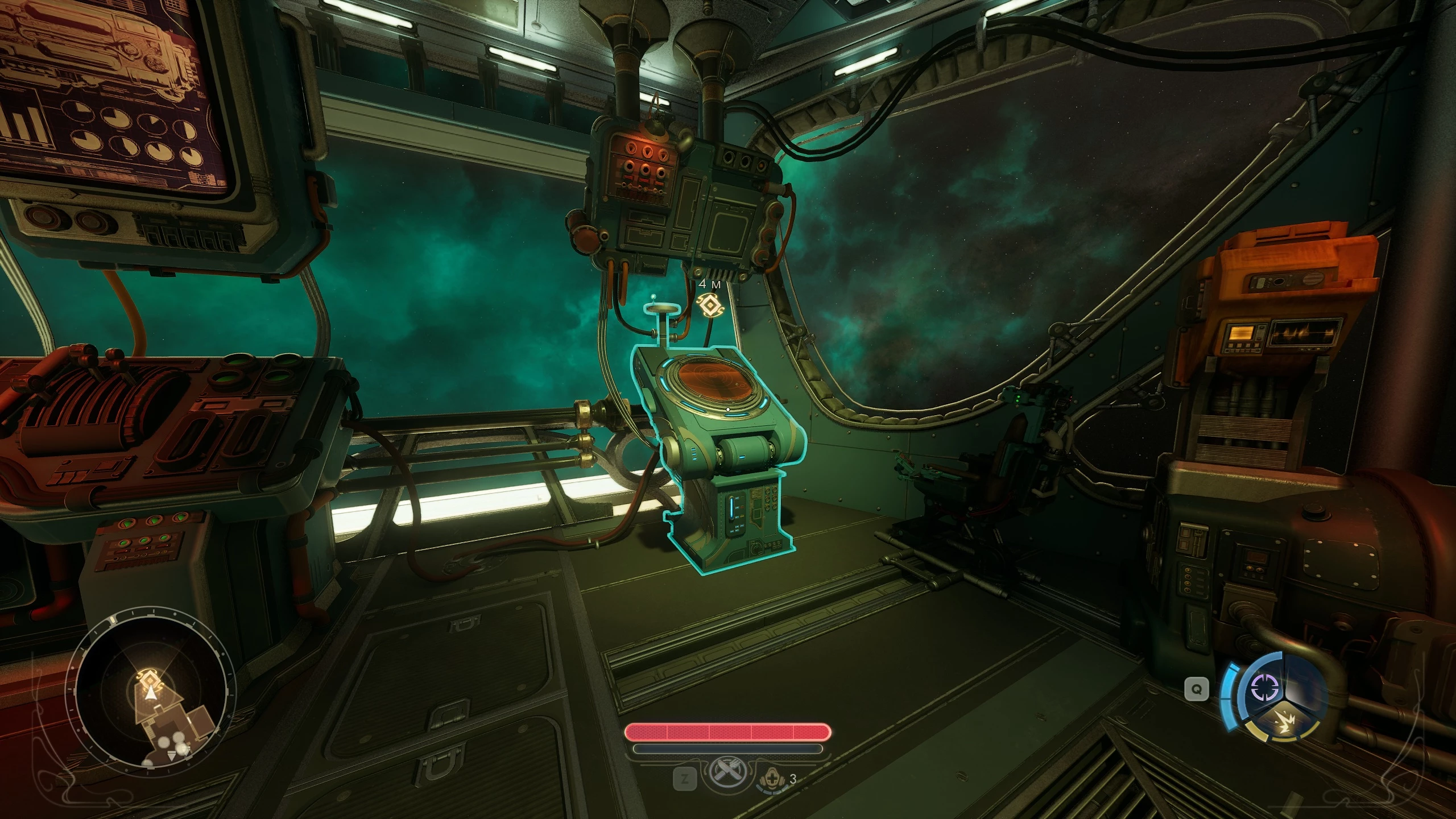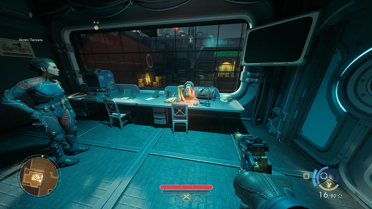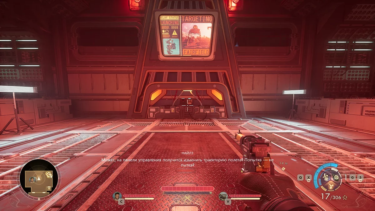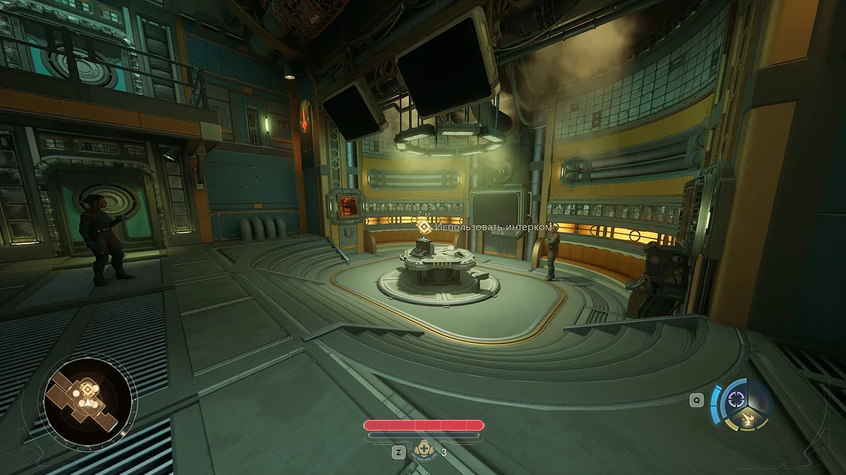 Подберите карточку со стола, спуститесь к интеркому и свяжитесь с агентом. Нужно приземлиться на неэксплуатируемую взлетную площадку и проникнуть в ядро исследовательского центра, избегая встречи с автоматами. После созвона поднимитесь на капитанский мостик и взаимодействуйте с навигационным терминалом (Navigator). Выберите станцию «Горизонт» (Horizon Point Station) и посмотрите катсцену приземления команды.