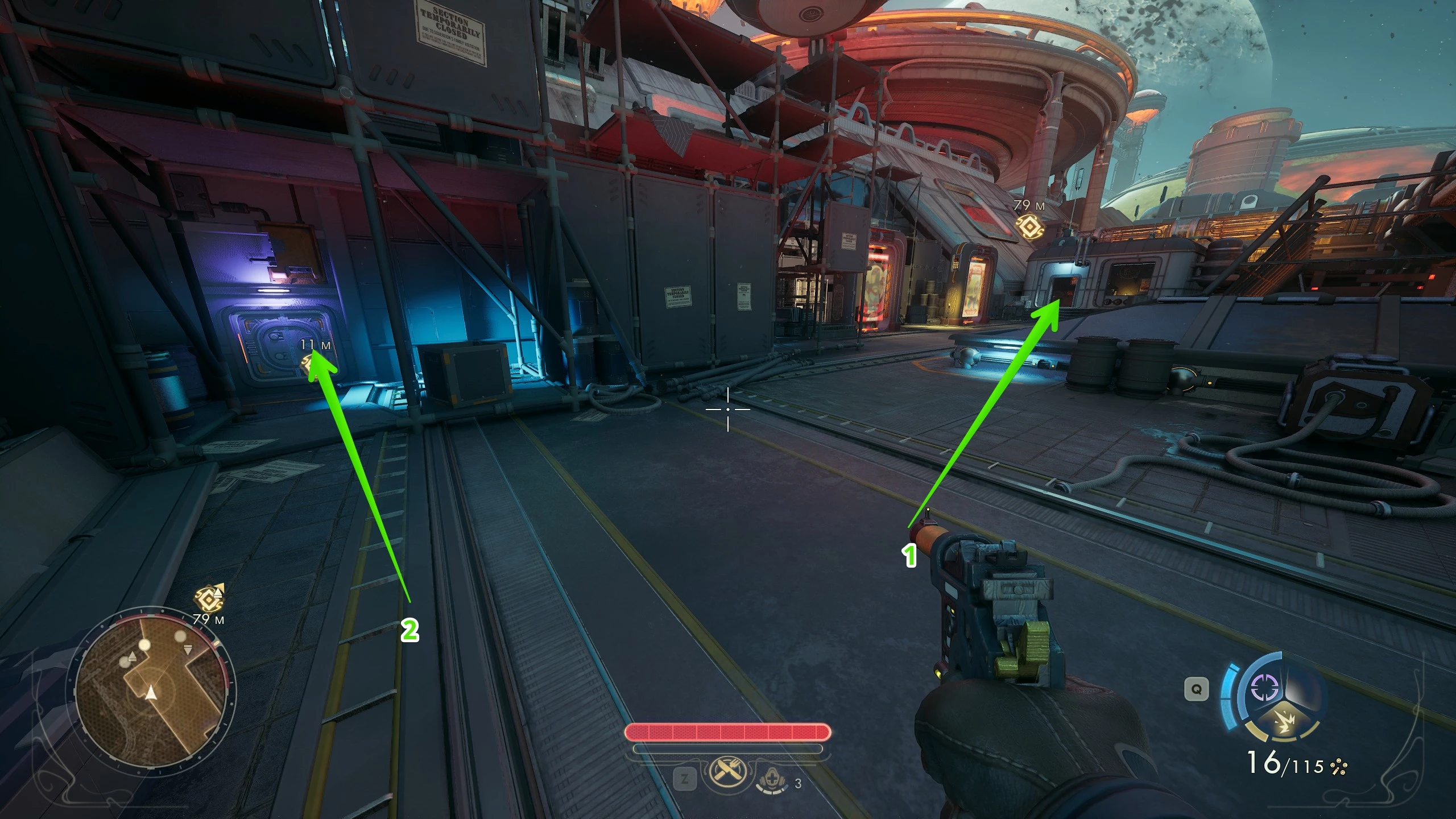 Прорывайтесь через солдат вперед. В конце заберитесь на второй этаж и отыщите пульт управления вышкой связи (Backup Power Core). Вы можете удалить ядро или с помощью навыка «Взлом» установить запись агитации правительства Земли. Таким образом откроется проход к лифту, ведущему к скачковой лаборатории.