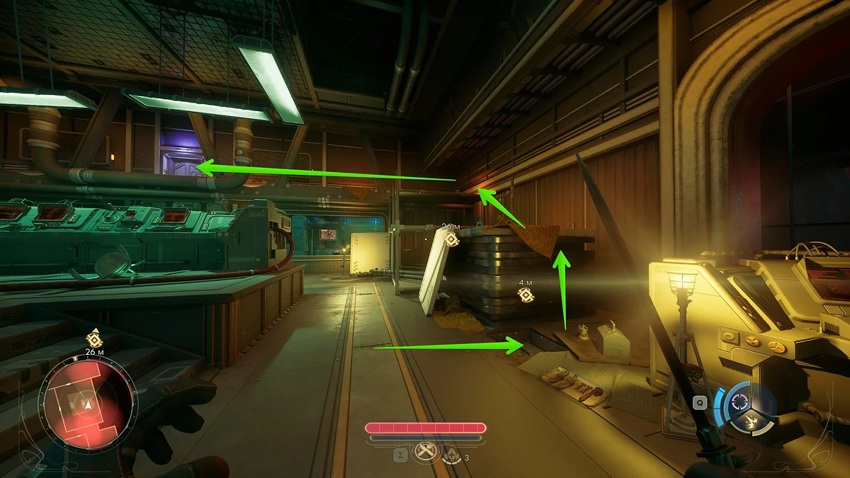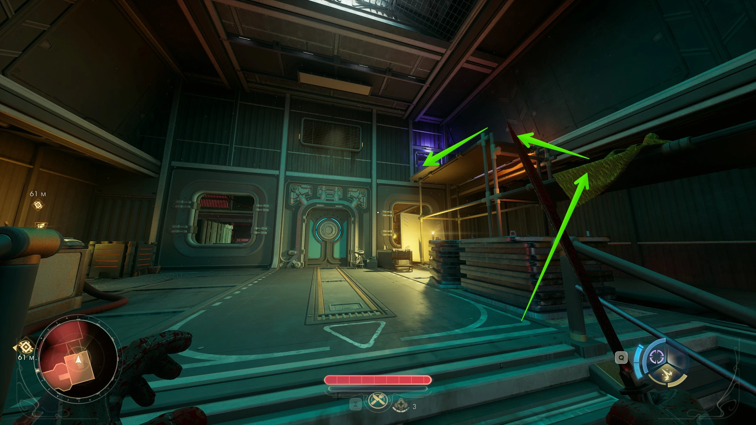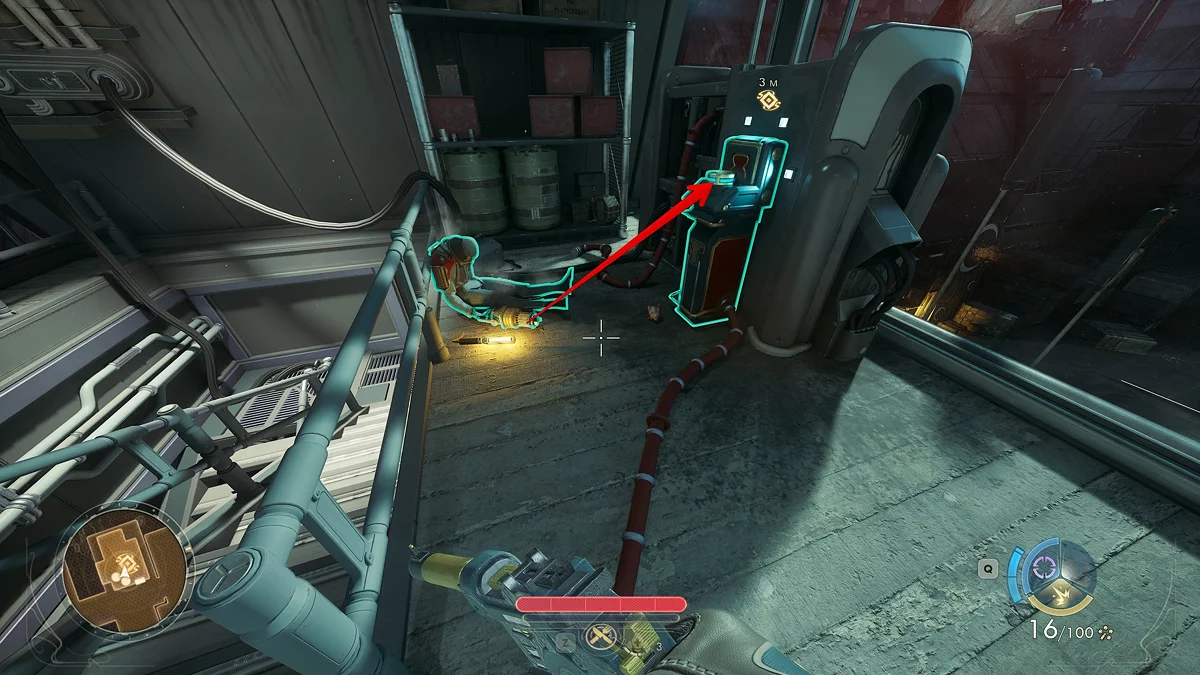 - Войдите в соседнее помещение и взломайте с помощью магнички вентиляционный люк. Зайдите в маленькое помещение у ангара и с помощью обходного шунта отключите автоматоны.