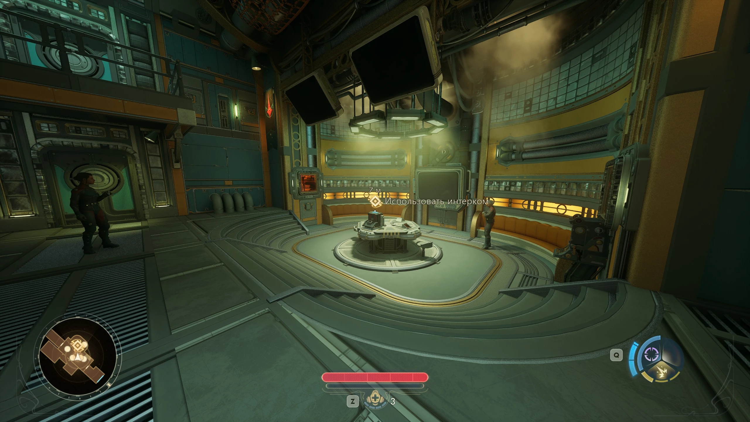 Спуститесь вслед за юношей к интеркому (Intercom), чтобы связаться с агентом Августиной де Врис (Augustine de Vries), которая должна ввести экипаж в подробности операции. Но для активации прибора потребуется вставить в него удостоверение капитана (Commander's Credentials).