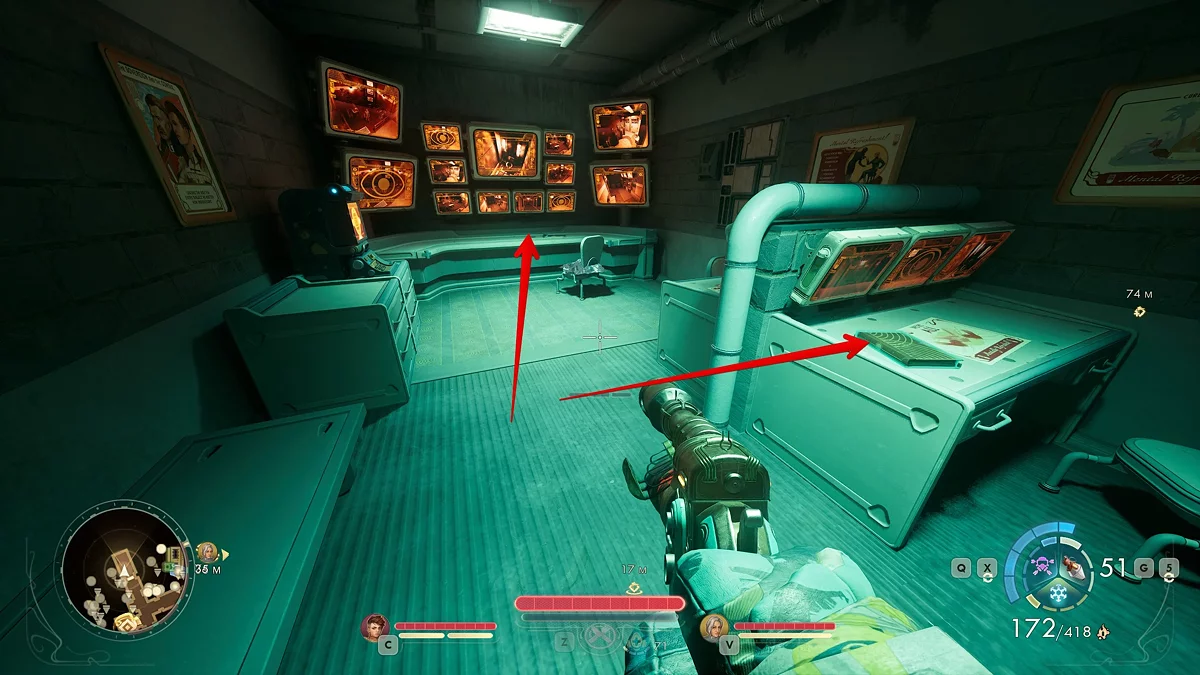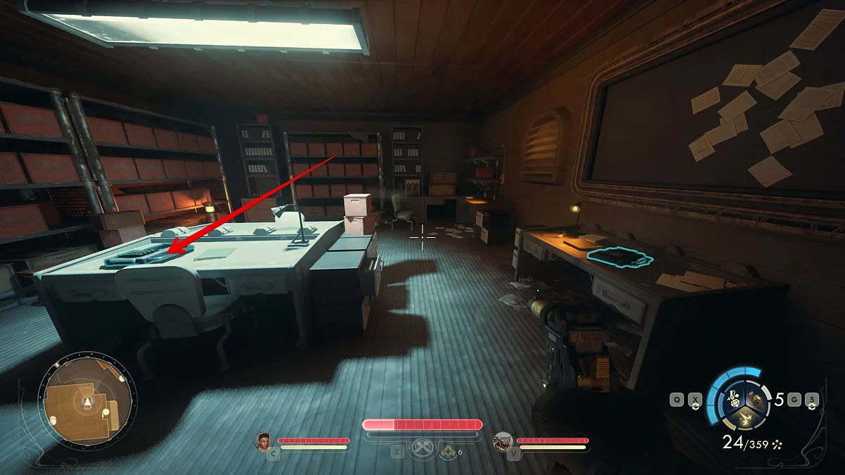 Проникните через главный вход или вентиляцию с левой стороны здания и воспользуйтесь лифтом. Войдите в кабинет над коридором и подберите со стола заметку, а затем двигайтесь вглубь комплекса.