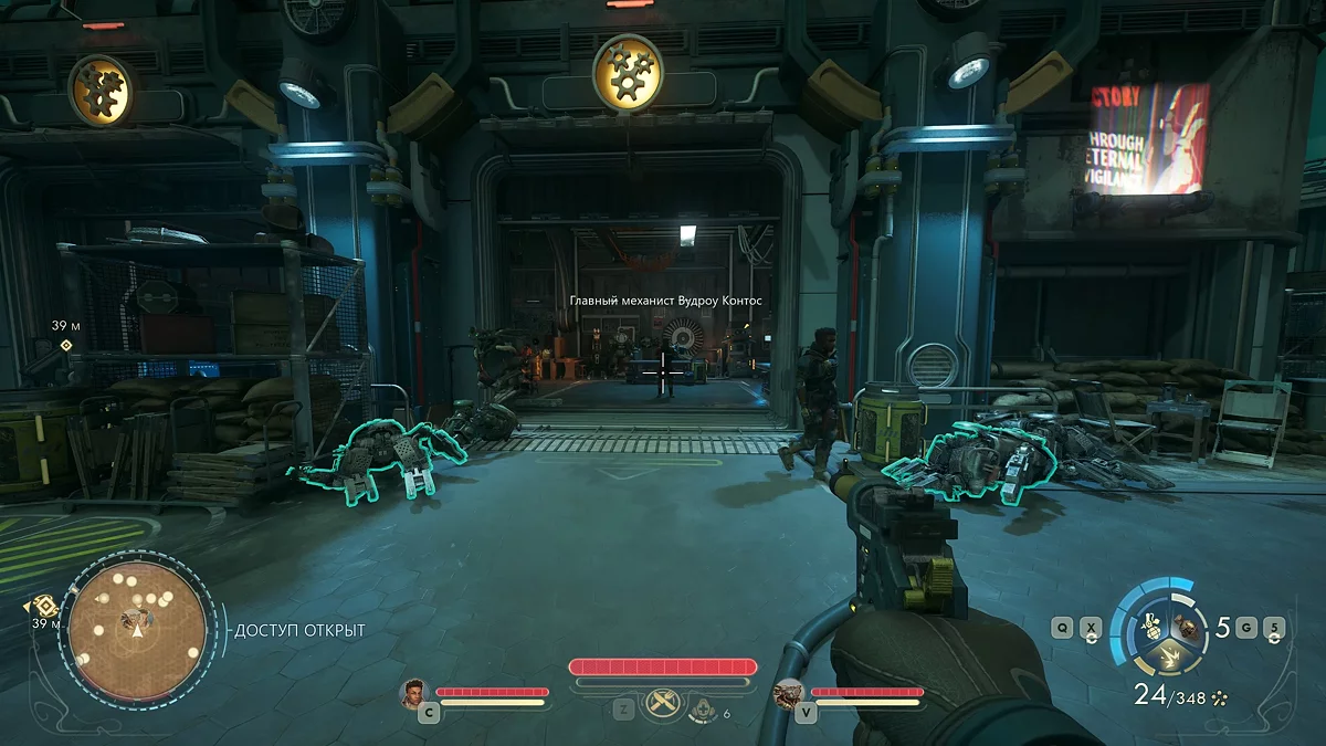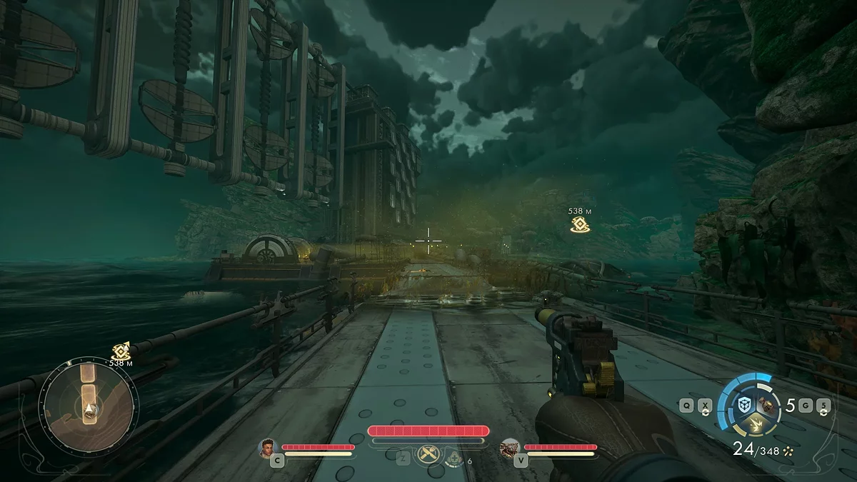 Один из самых простых вариантов. Однако стоит учесть, что солдат много. К тому же им активно помогают автоматоны. Если решились на эту авантюру, соберите как можно больше боеприпасов и гранат. Главная задача — подняться в рубку управления и опустить мост с помощью рычага.