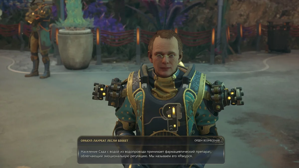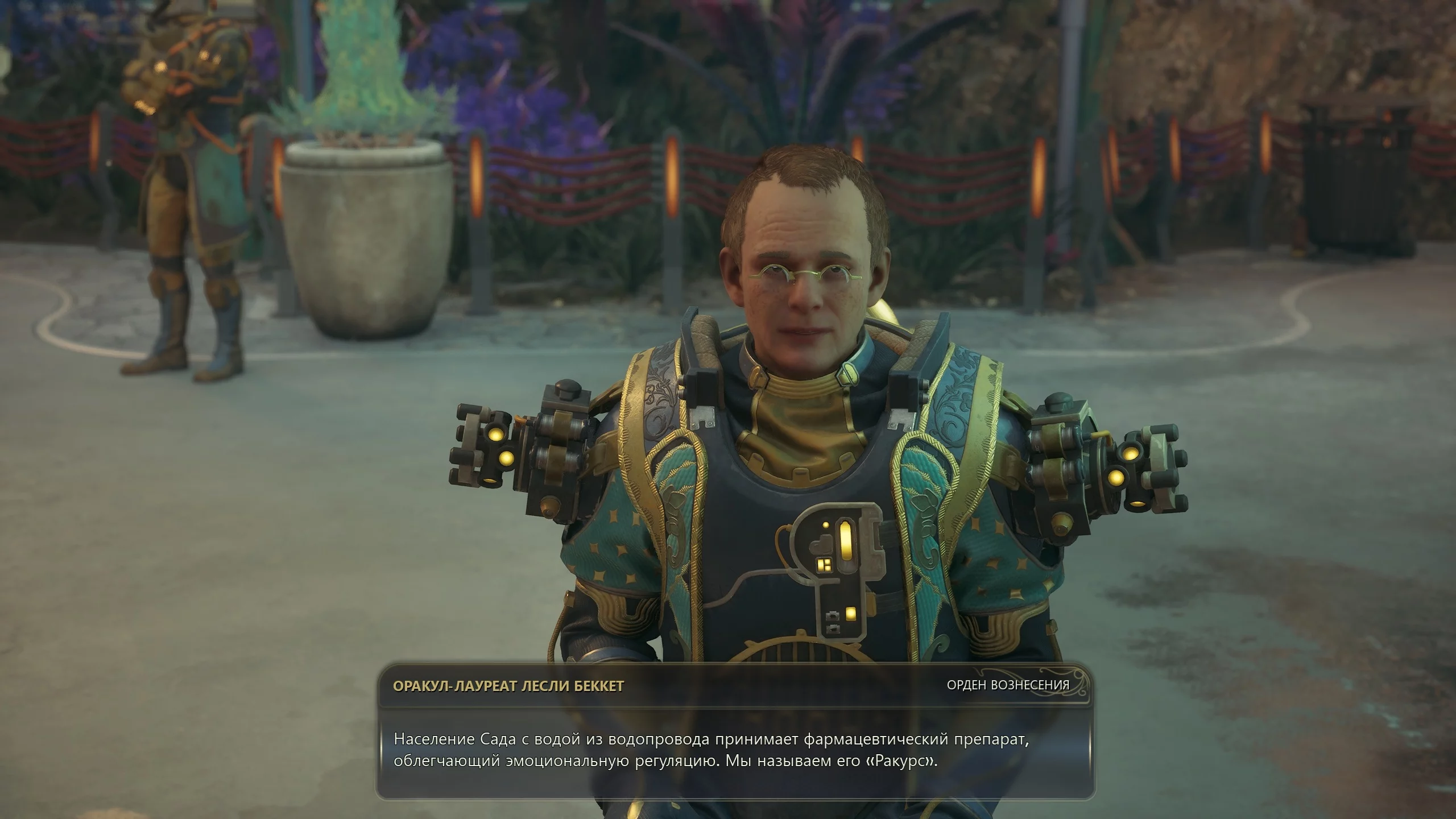 Вернитесь к вице-президентам и поговорите с тётей Клео. Она примет участие в переговорах при условии, что верхушка Ордена воскрешения пойдёт на встречу. Отправляйтесь на планету «Обитель» в локацию «Сад Лапласа» и отыщите оружейника-лауреата Энолу Крафт, чтобы начать задание «Агрессия под микроскопом».