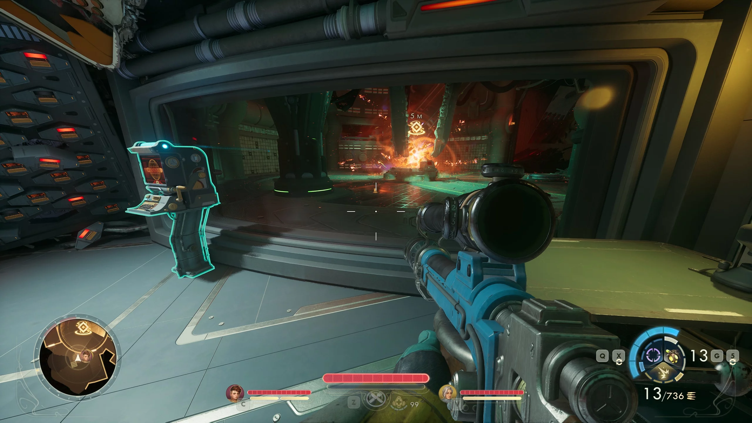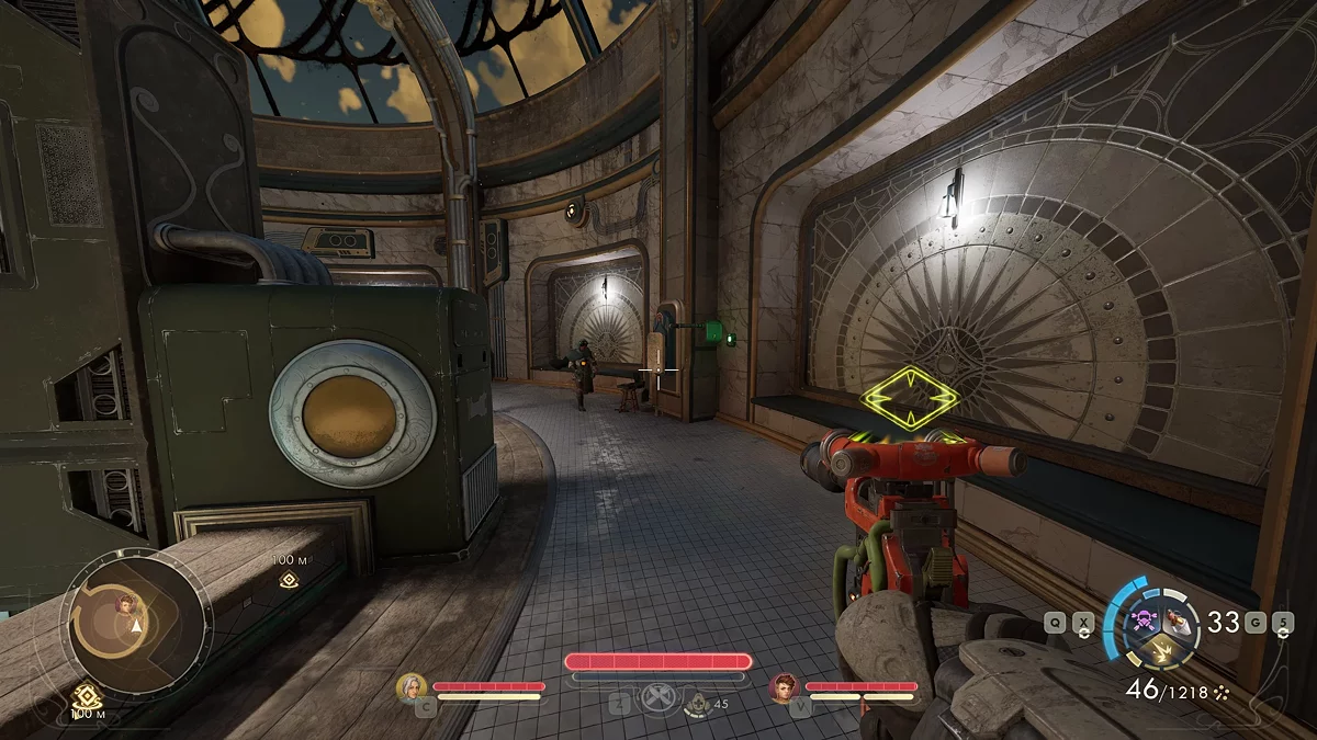Теперь отправляйтесь в Ньютон и активируйте разлом на мосту. Переберитесь на другую сторону, а затем воспользуйтесь лифтом, чтобы подняться к подножию «Архива». Пройдите с левой стороны через солдат и осмотрите панель, с помощью которой союзные отряды смогут прийти к вам на помощь. Устройство будет сломано, для его восстановления следуйте вдоль красных проводов.