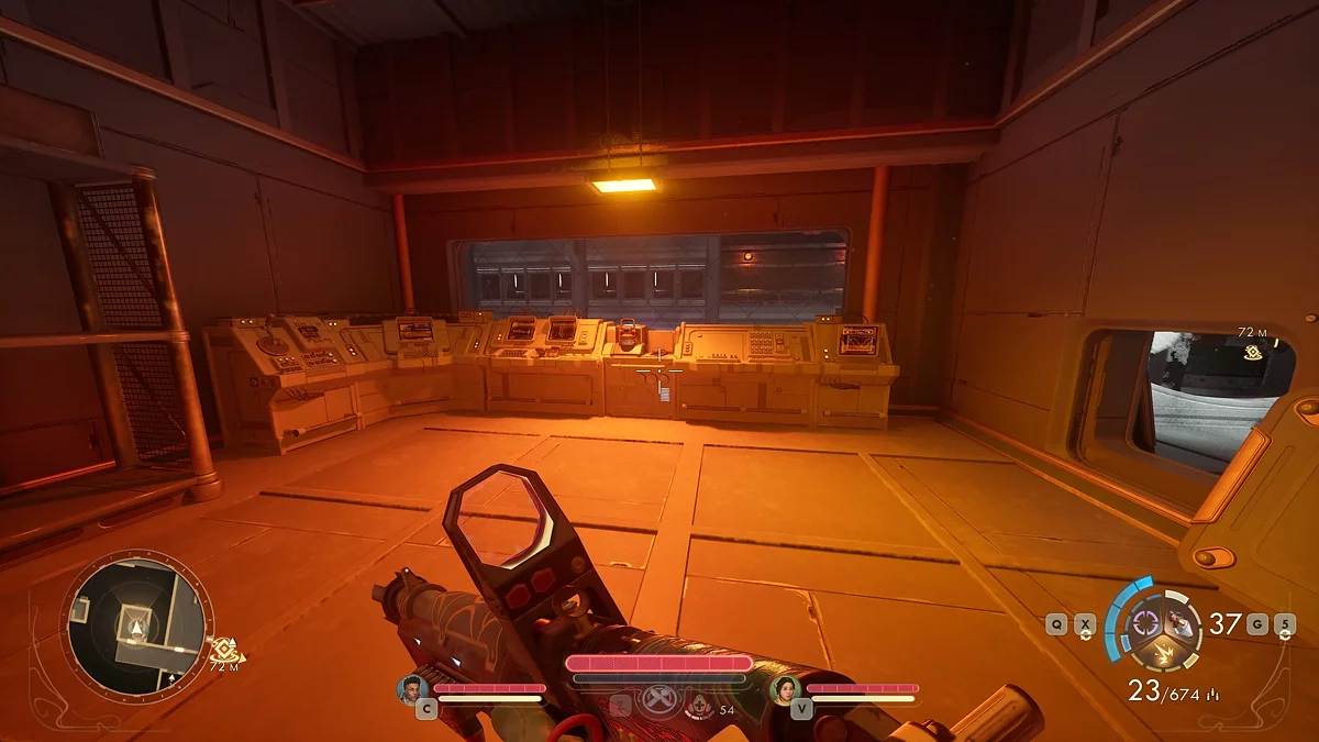 Попадите через ангар в небольшой командный центр, а затем уйдите направо, чтобы встретить ведущую учёную Хёрли (Lead researcher Hurley). Этот центр использовался для изучения разломов, поэтому уничтожение «Горизонта» не остановило исследования протектората. Девушка согласится помочь с модулятором, если вы найдёте важную для неё информацию в закрытой секции комплекса.