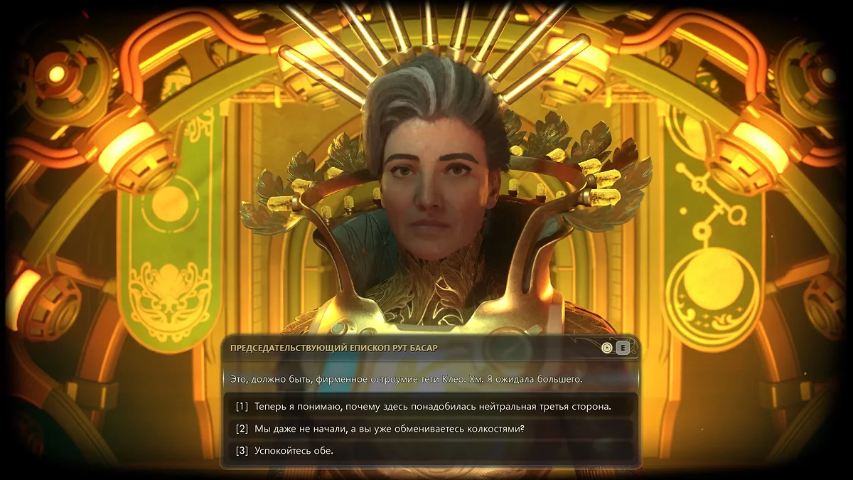 Нужно урегулировать три вопроса, определяющие будущее корпорации «Тётя Космос» и Ордена Вознесения. Решения повлияют на концовку игры.