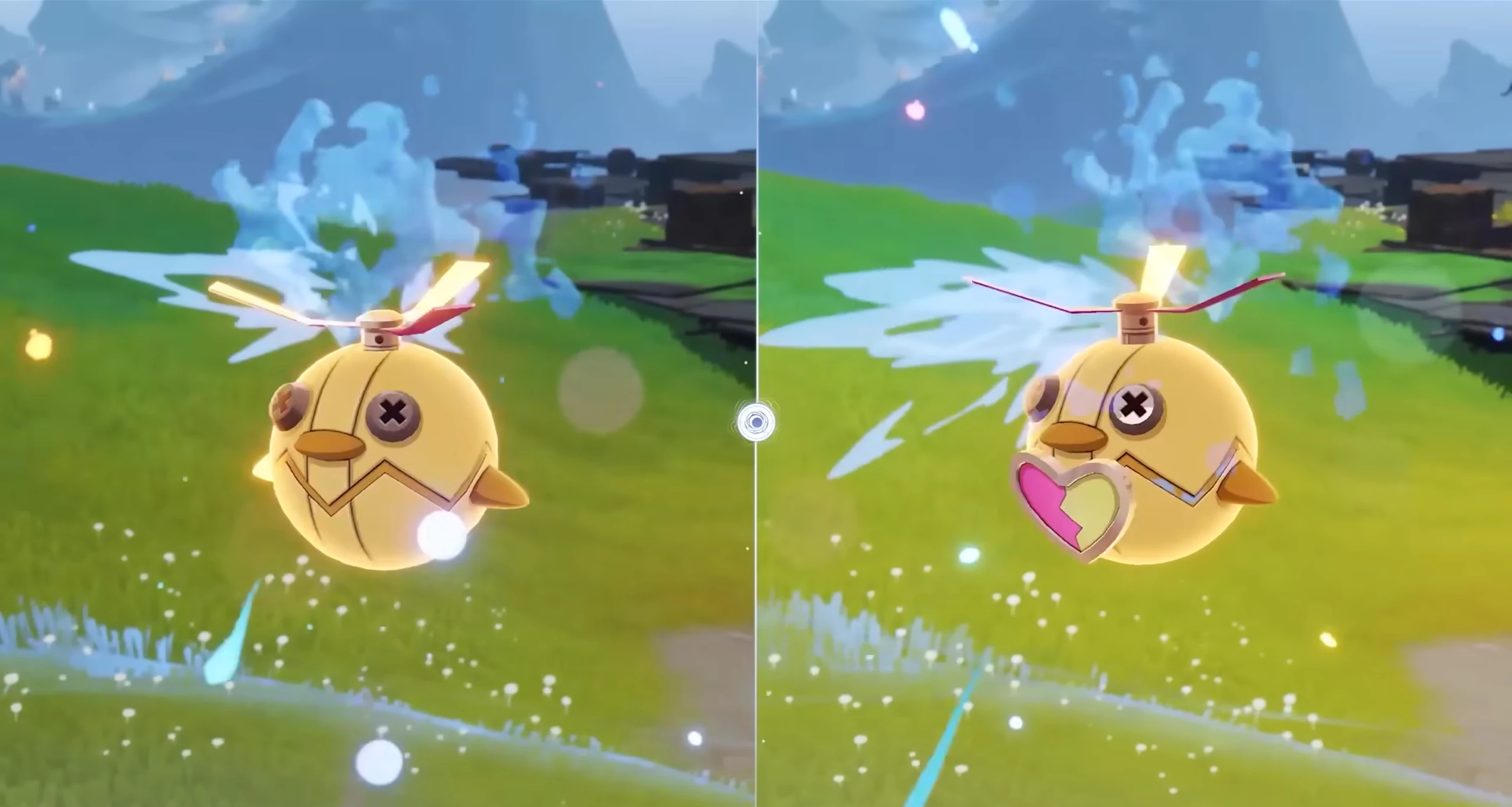Для обоих персонажей эффект набора инструментов особенный. Так, например, у Айно меняется механический утенок. Он получает на своем теле специальное сердечко.