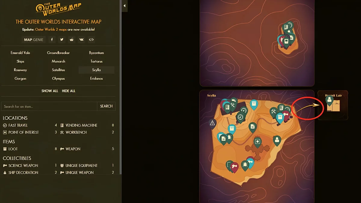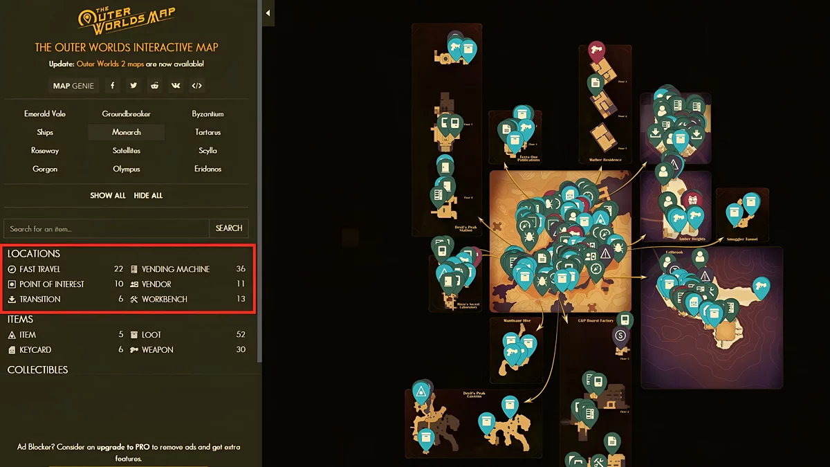 На ней изображены все ключевые локации, а также места, где можно получить дополнительные задания, персонажи и коллекционные предметы. Такой план поможет как случайным игрокам, которые планируют ограничиться основной сюжетной линией, так и и тем, кто хочет пройти The Outer Worlds 2 на сто процентов.
