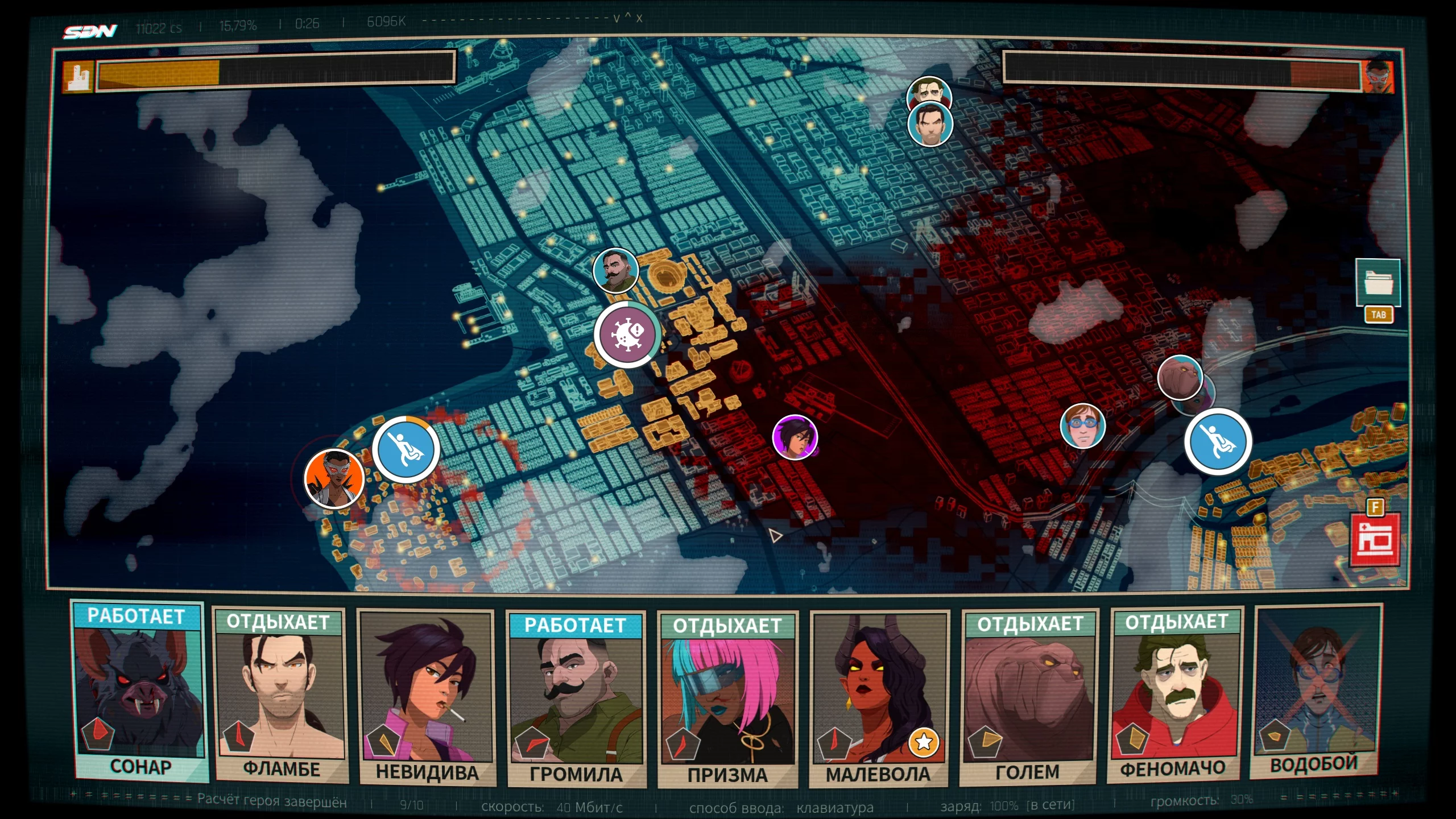 Далее рабочая зона вашего филиала СДС расширится. На востоке случится взрыв, и полоса здоровья города снизится на четверть. Затем появится персонаж, уволенный в третьем эпизоде «Текучки», и шкала ХП банды Полога. Чтобы её ослабить, регулярно отправляйте героев на заявку «Атака на Сонара/Купе» и продолжайте смену.