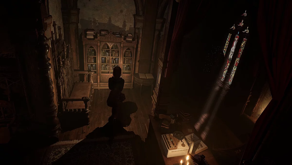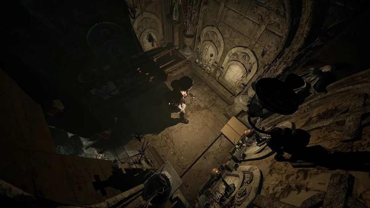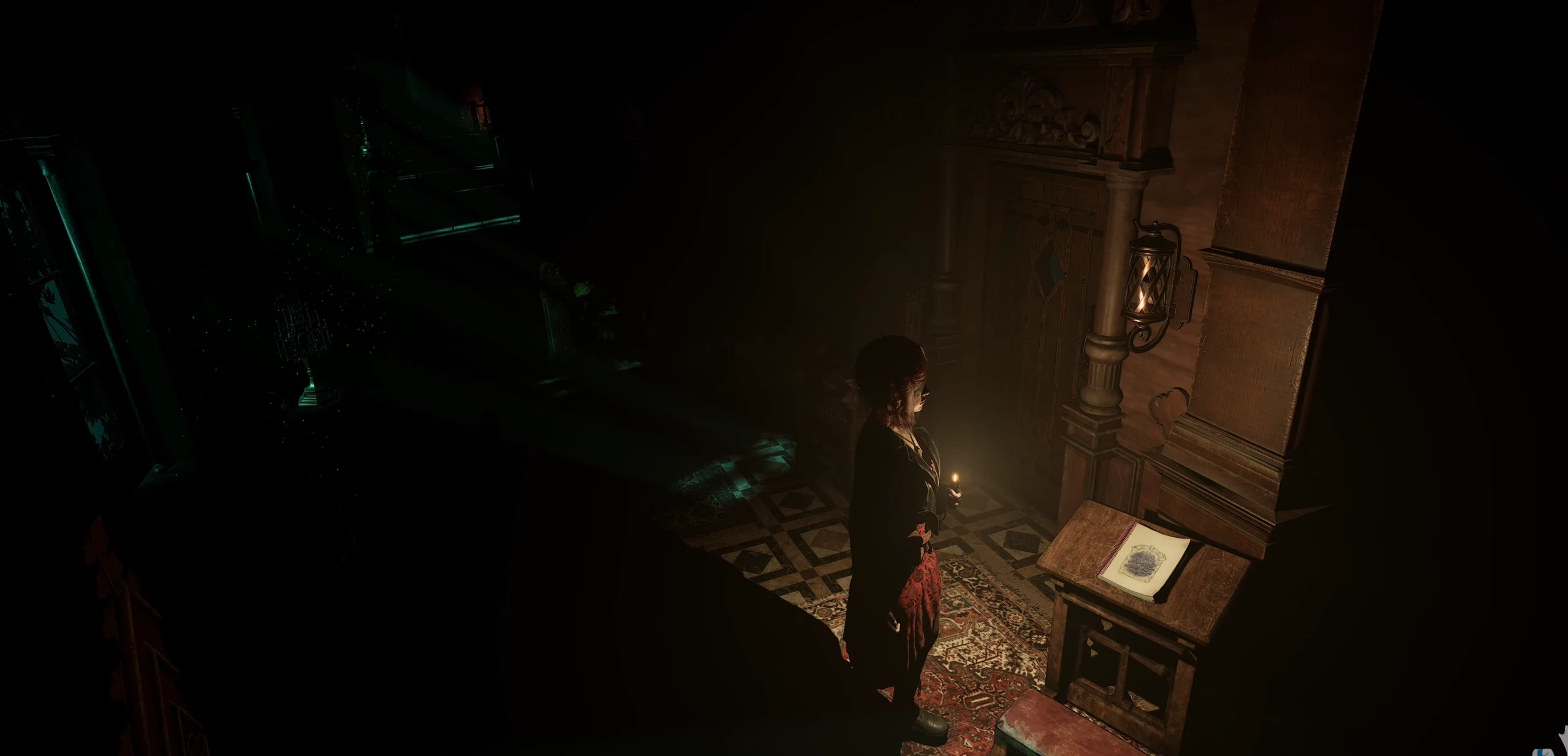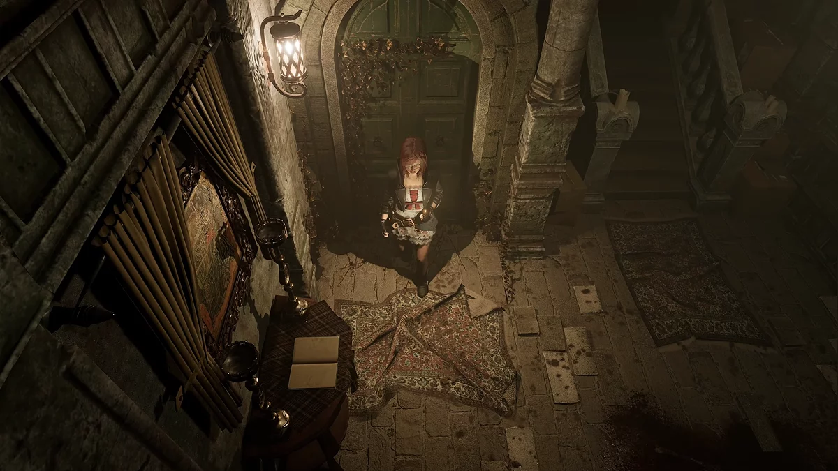 Следующий лист находится в поминальной церкви. Откройте дверь ломом и поднимитесь по лестнице до алтаря, на котором лежит второй блокнот монахини.