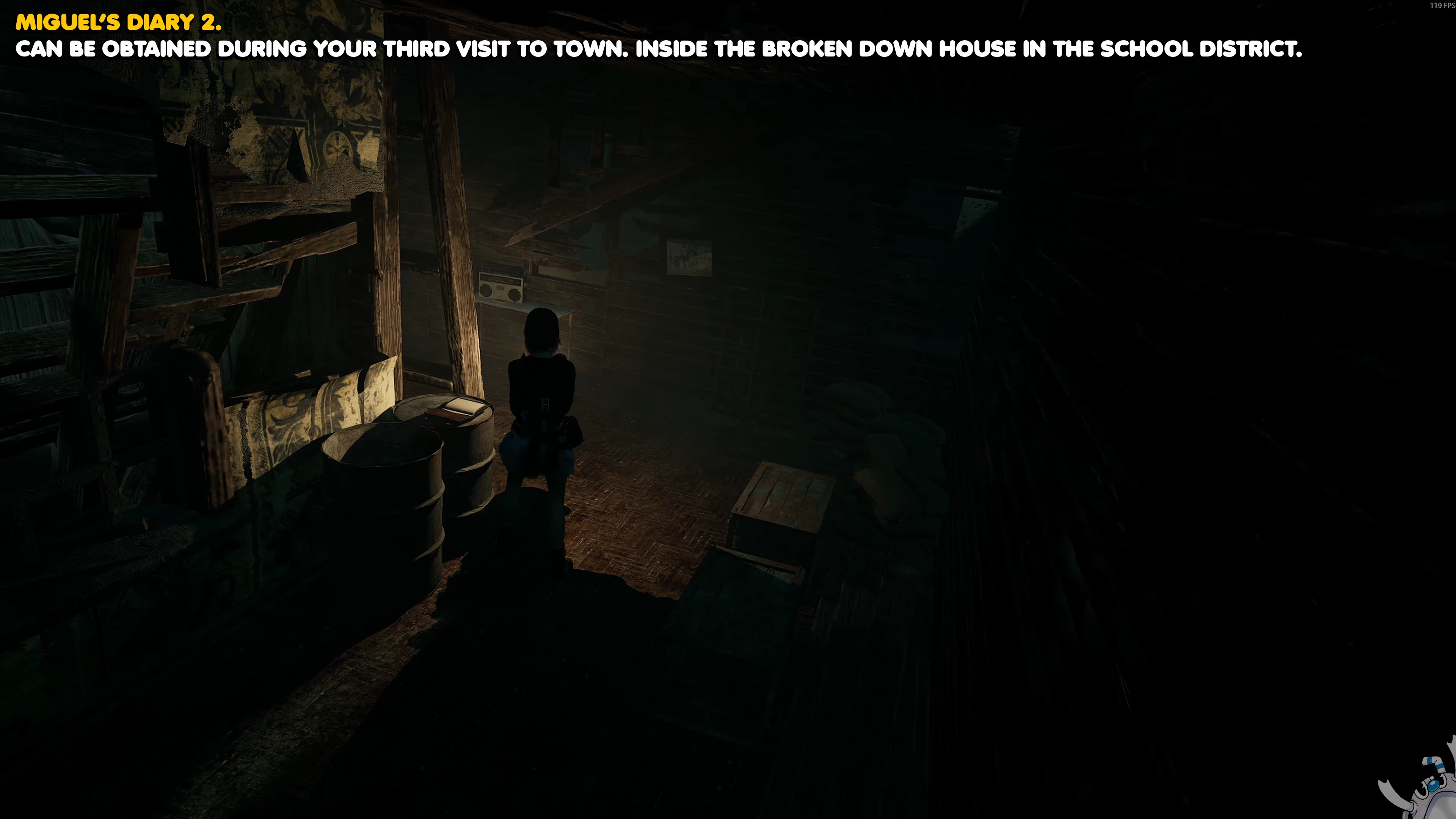Направляйтесь к заброшенному дому на школьном квартале и подберите дневник на бочке в коридоре.