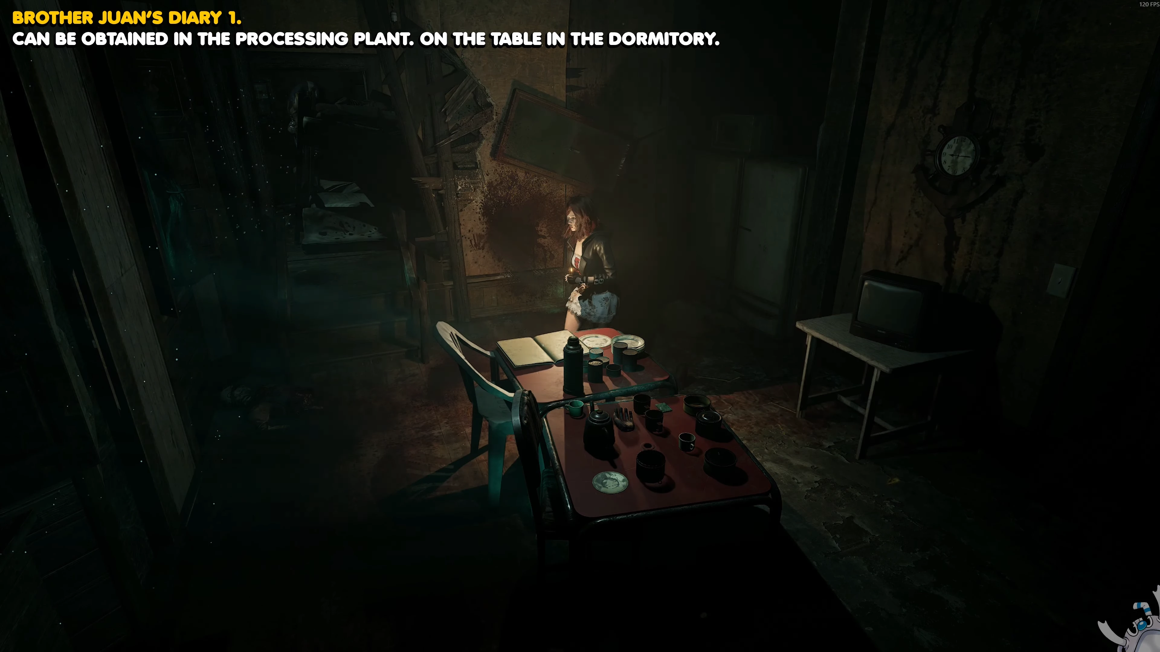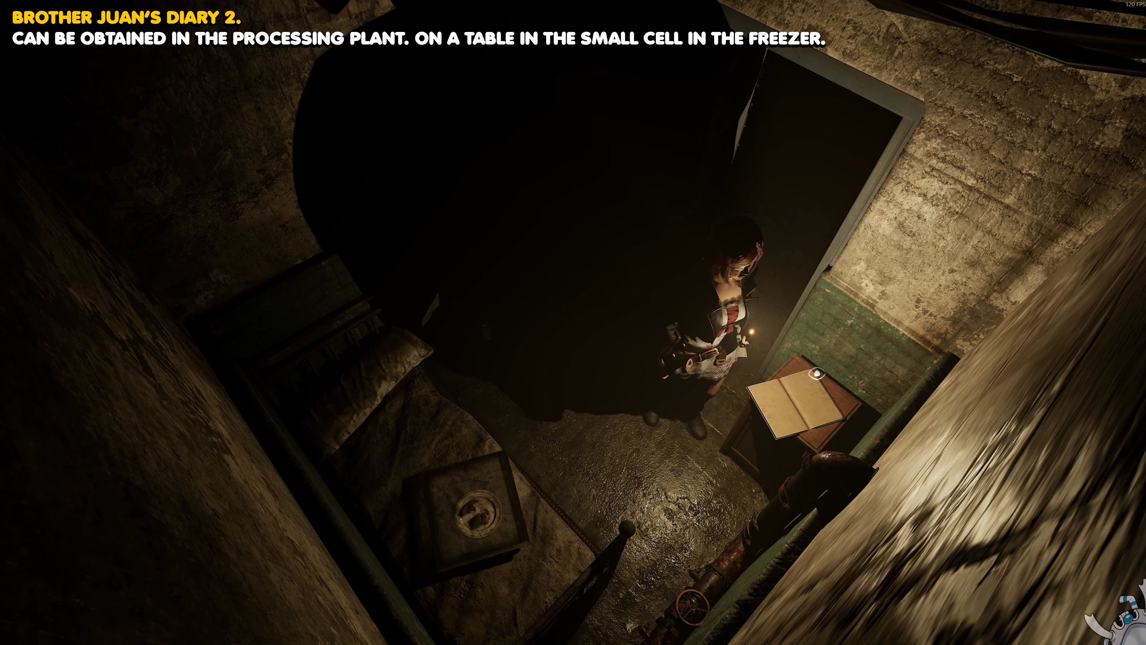 После катсцены с повзрослевшей Анной выйдите из камеры с помощью гвоздепистолета и подберите дневник в коридоре морозильной комнаты.
