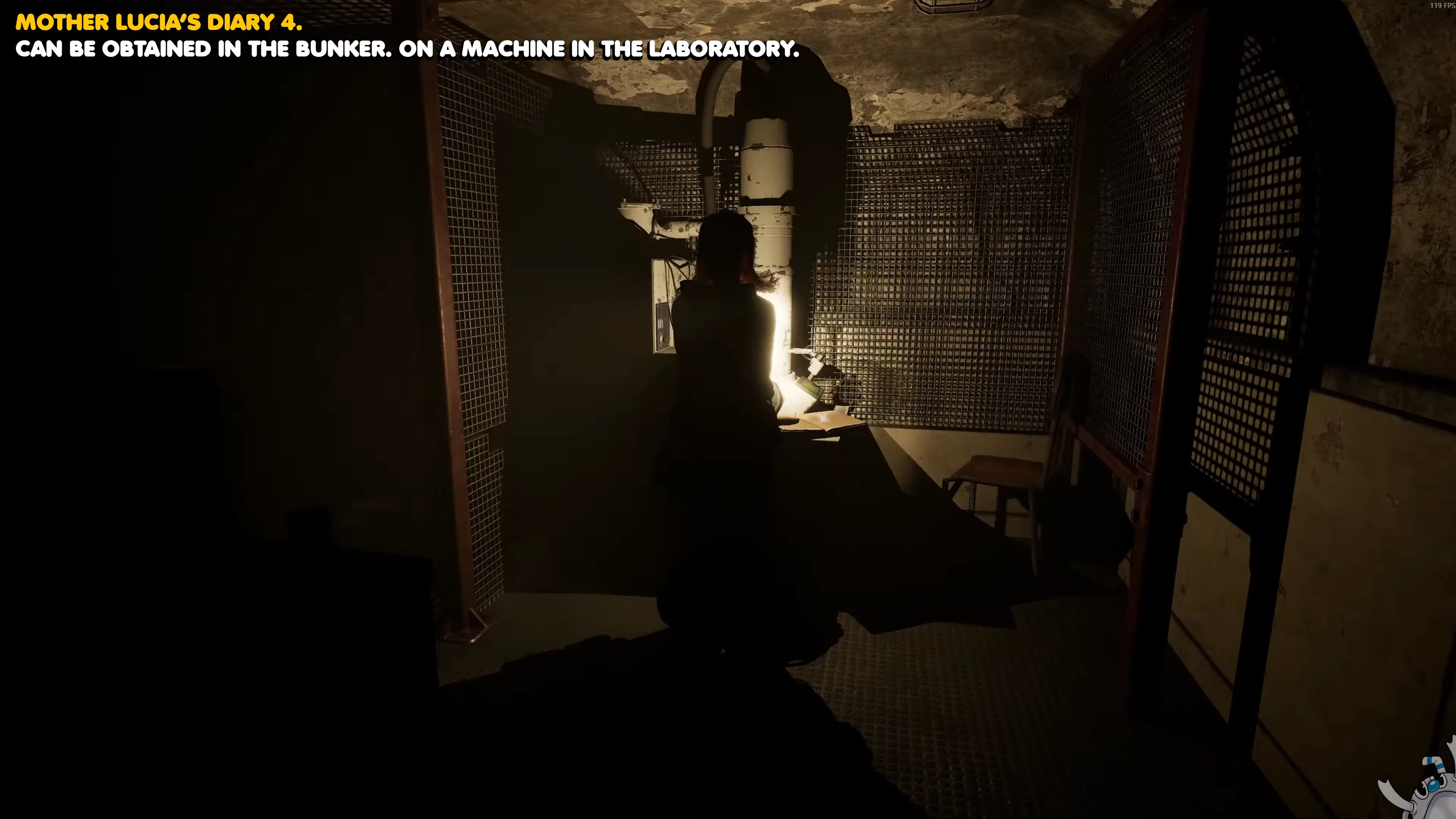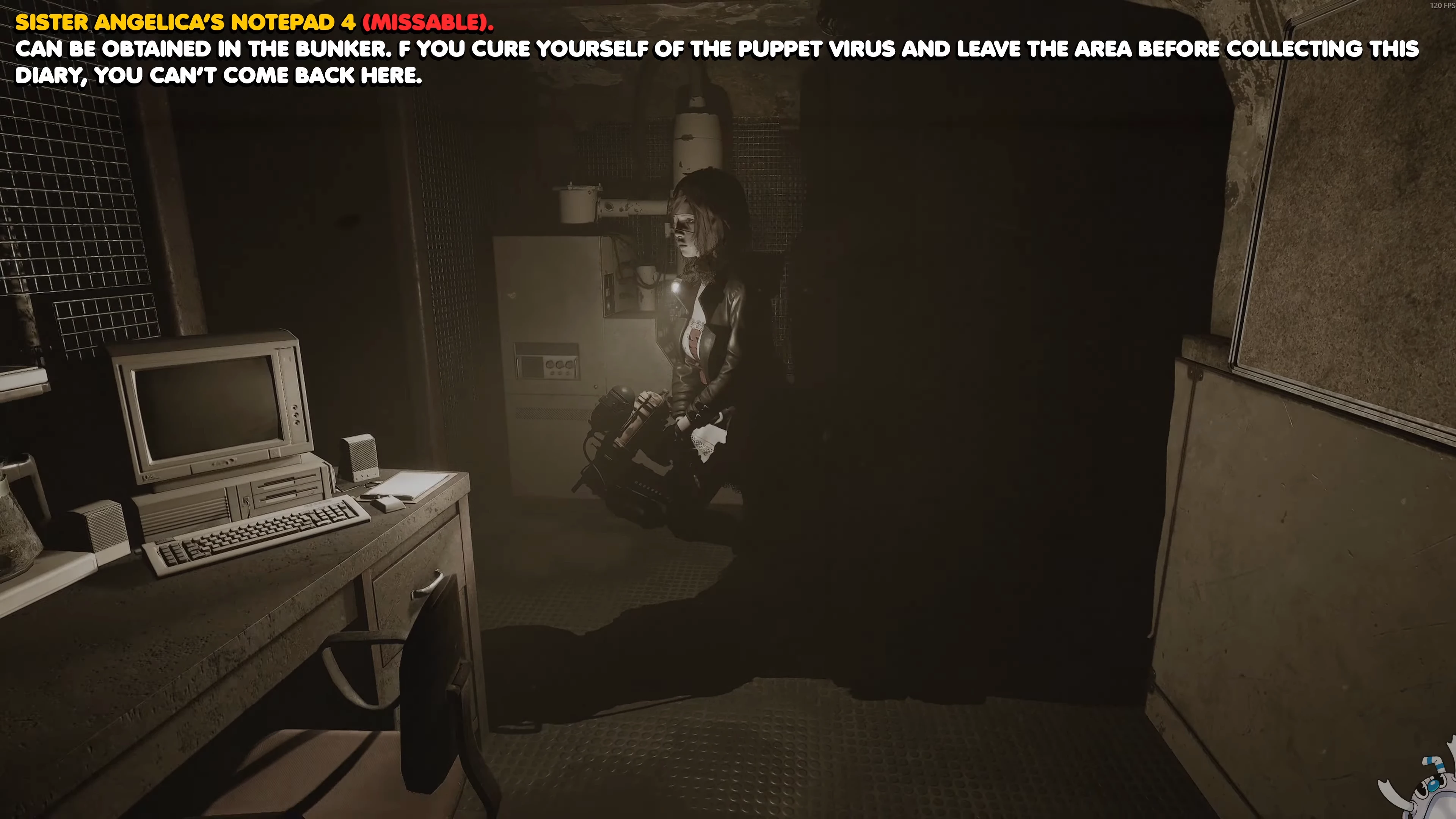 Четвёртый лист дневника Анджелики — особенный: его легко пропустить, и после определённого этапа игры он станет недоступен. Возьмите видеокассету лаборатории в комнате с капсулой и используйте её вместе с проектором в блоке камер, чтобы попасть в лабораторию прошлого. Рядом с камерой, ведущей обратно в реальный мир, будет проход в комнату с кроватью. Пройдите внутрь и подберите блокнот на столике возле входа.