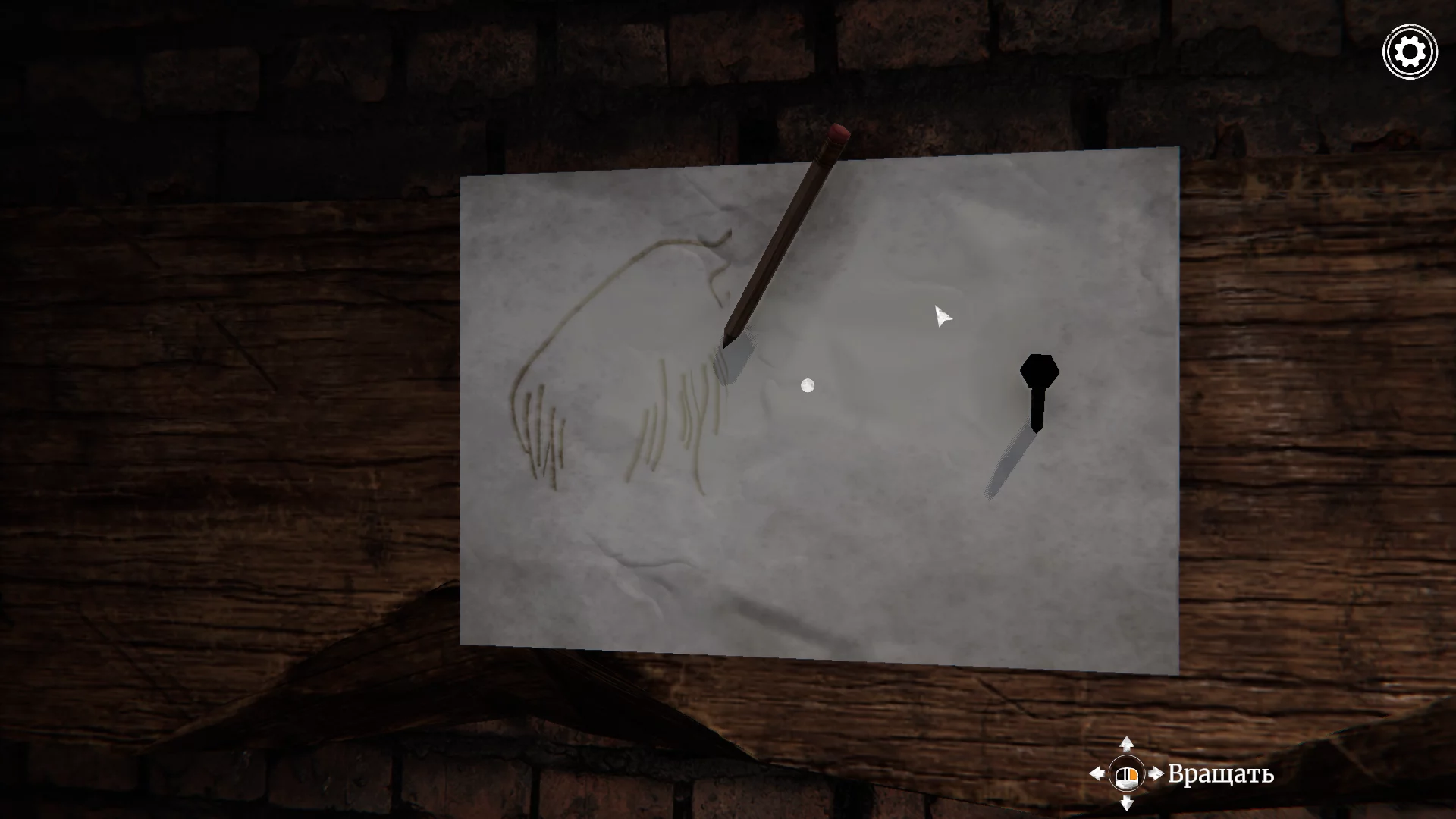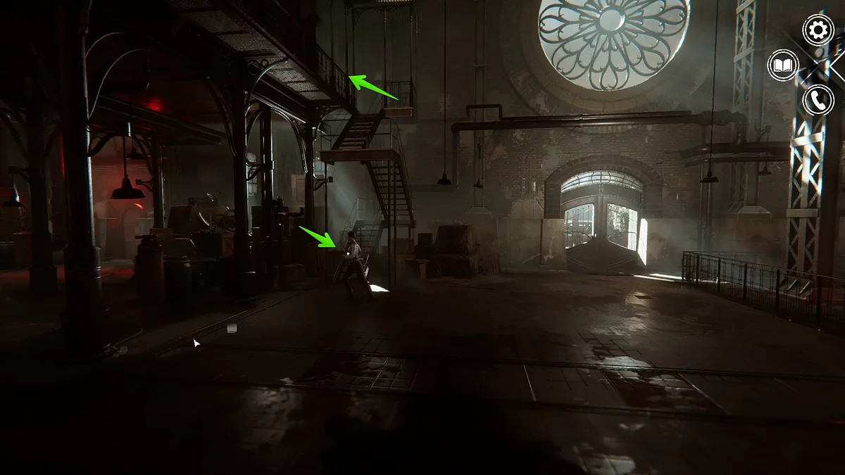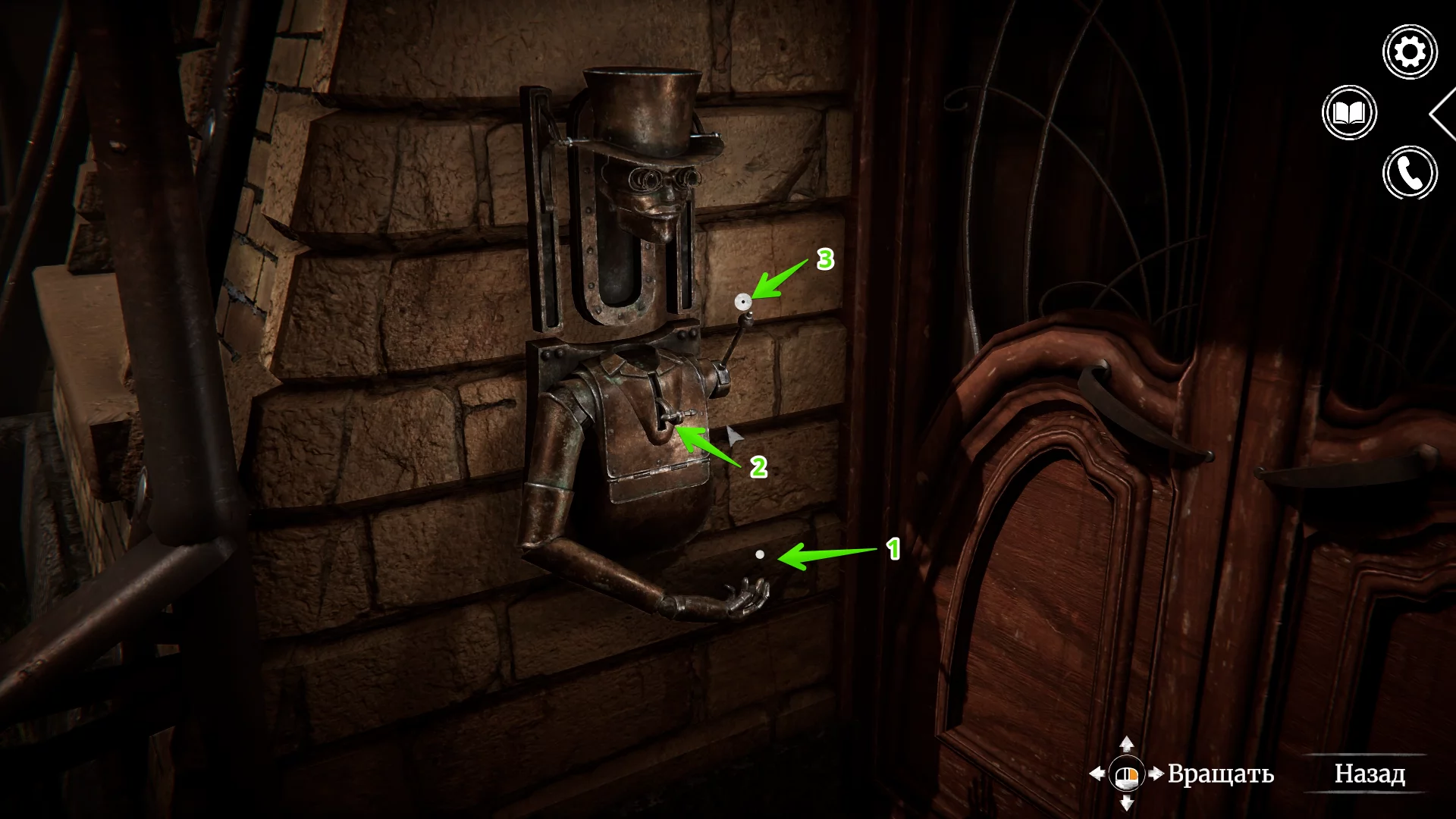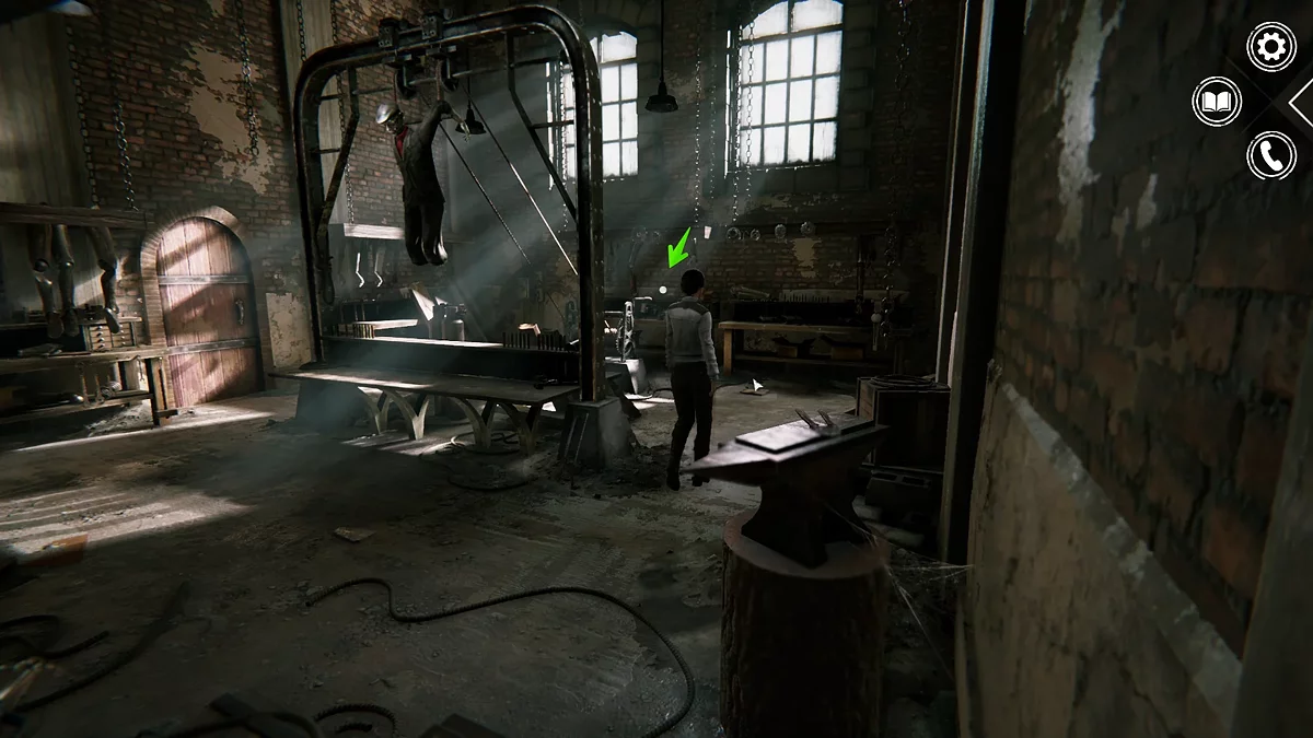 Зайдите в помещение. Слева на стене висит распятие — осмотрите его. При взаимодействии распятие можно поворачивать, открывая потайное отверстие за ним. Внутри вы найдёте ключ, торчащий из замка.