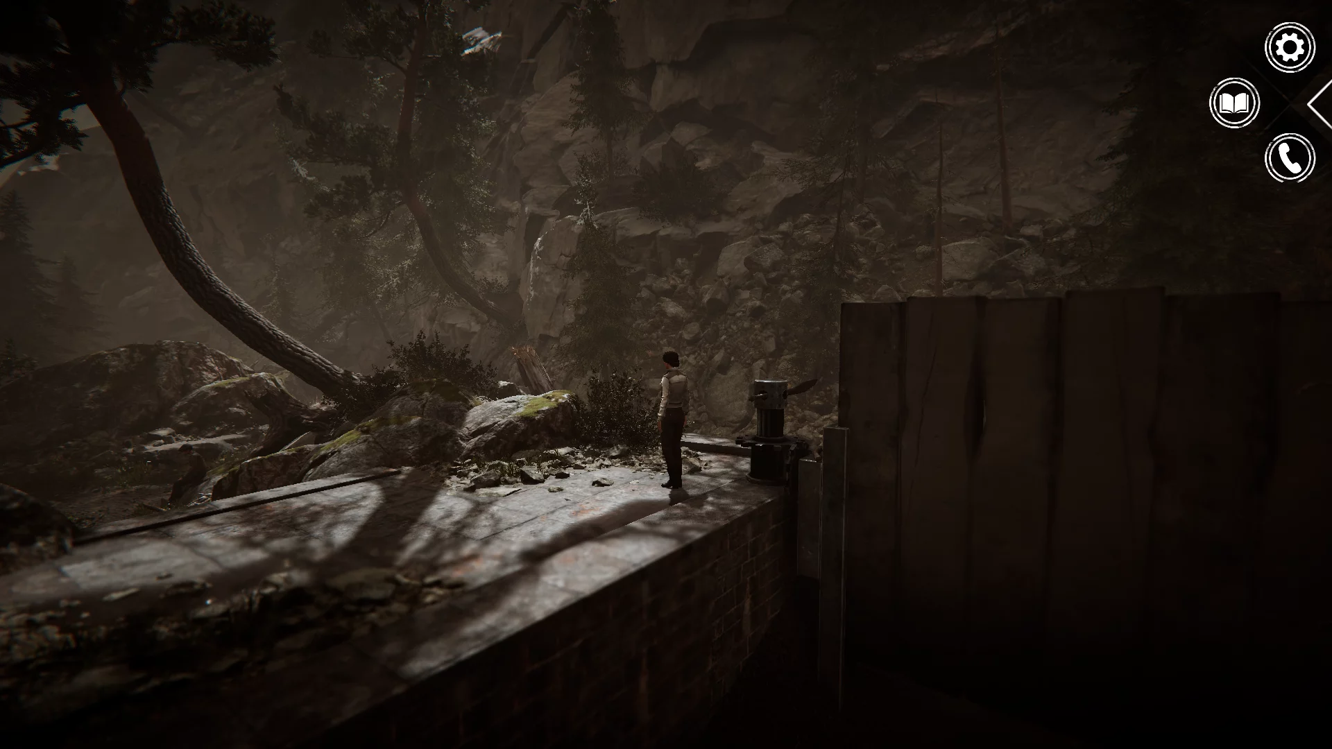 Следуйте по единственной тропе и по левой стороне у водоёма осмотрите небольшую деревянную лодку. Заберите здесь весло — оно пригодится прямо сейчас. Пройдите мимо сидящего на камне мальчика и поднимитесь по лестнице справа. Осмотрите механизм для открытия шлюза, вытащите сломанную палку и вставьте вместо неё весло. Поверните механизм для открытия шлюза.