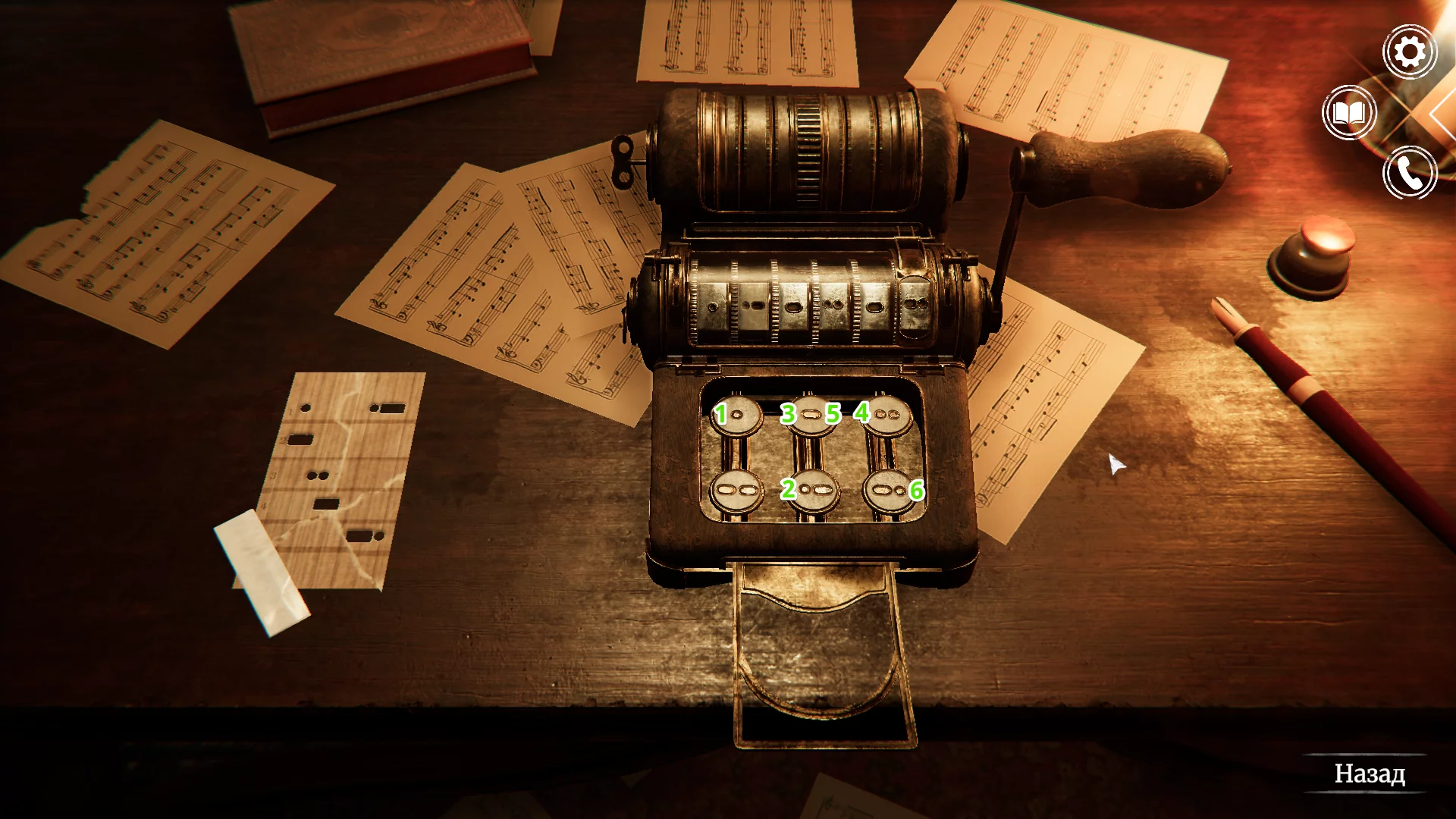 После того как вы запомнили нужные данные, подойдите к панели управления. Вставьте перфокарту Оскара в прорезь по центру, между двумя рычагами.