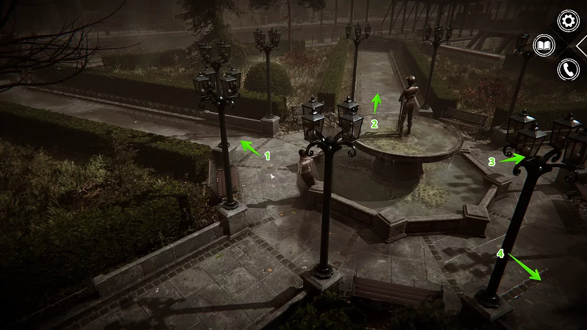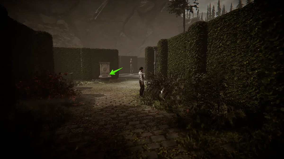 Перед выполнением следующего квеста, рекомендуем отправиться к дому Анны Форальберг (4). Главная дверь в дом закрыта, однако вам нужно обойти здание по правой стороне и осмотреть выдвижную лестницу. Чтобы активировать её, придётся отыскать ключ. Пройдите вглубь сада, побеседуйте с работницей и рядом с фонтаном с левой стороны осмотрите единственный интерактивный объект. Здесь и будет лежать ключ от лестницы.
