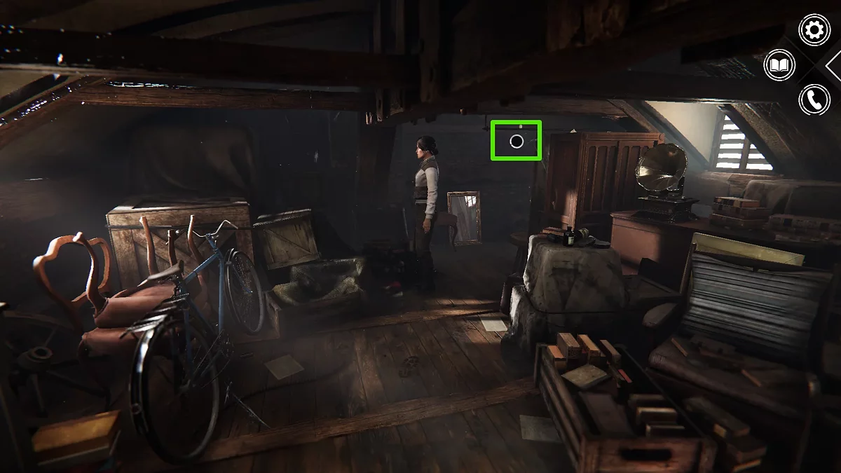 Однако на этом исследование чердака не заканчивается. Пройдите в противоположный конец помещения и найдите интерактивный маркер «Взаимодействовать».