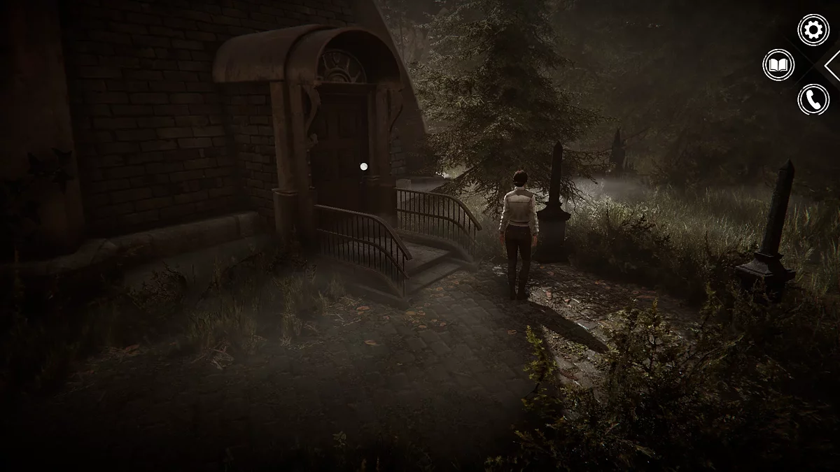 Возвращайтесь на главную улицу города и следуйте по дороге до мотеля, но не заходите внутрь. Пройдите мимо него и пересеките мост, чтобы оказаться у ворот кладбища с церковью. Если раньше Кейт отказывалась их открывать, теперь она сделает это без колебаний — настало время исследовать эту область.