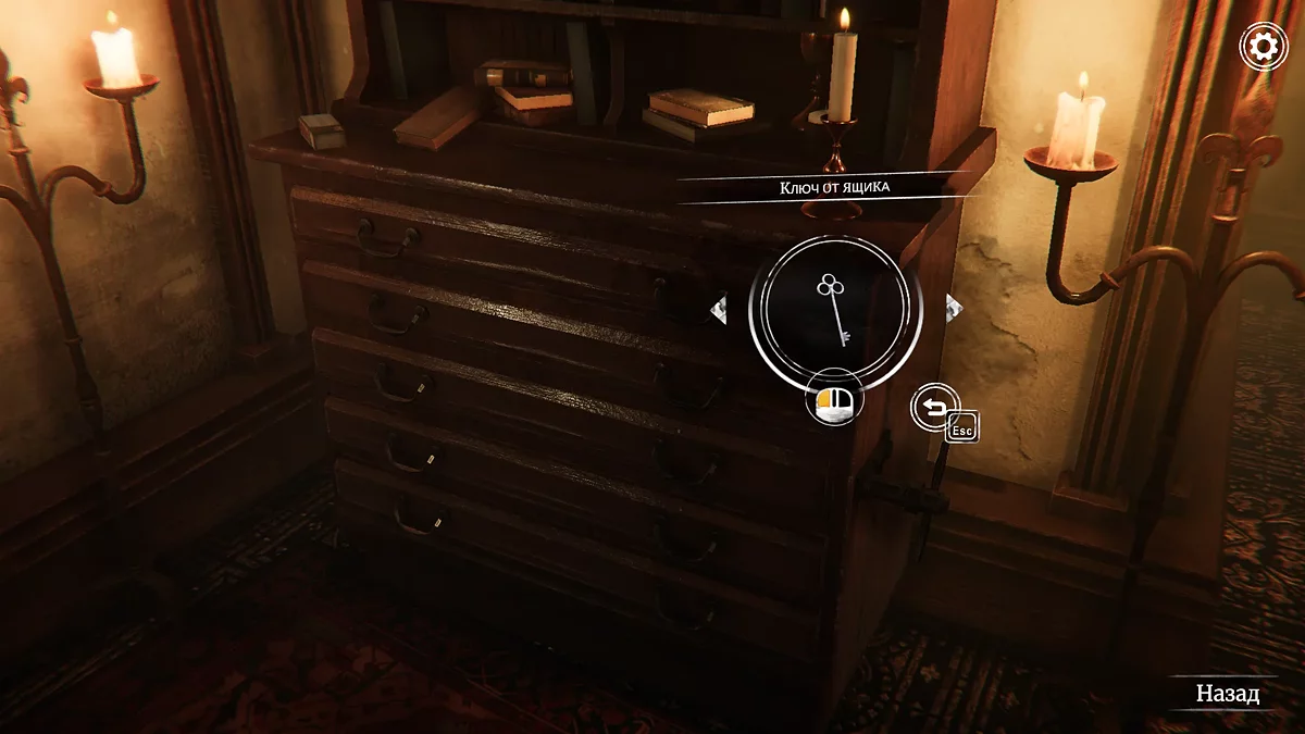 Но это ещё не всё: если открыть центральный ящик и потянуть за небольшой рычаг справа, откроется потайное отделение. В нём лежат ключ от склепа и письмо «Признание священника» — прочитайте его для дополнительной информации.