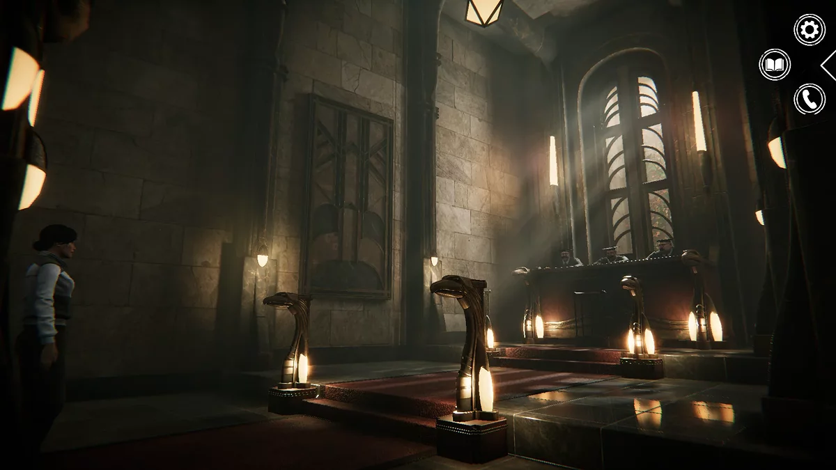Вернитесь назад и пройдите через главный выход со станции. Так вы окажетесь у здания университета. Пробегите к входу, минуя механический оркестр на площади. Рядом со зданием можно коротко пообщаться со студентом, после чего заходите внутрь. В холле поверните налево и откройте большую красную дверь — это кабинет ректоров.
