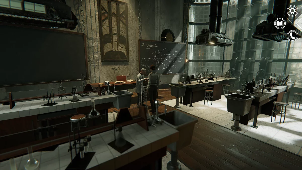 После того как поезд будет отбуксирован и вы попытаетесь к нему пройти, Кейт получит звонок от профессора Корнелиуса. Через несколько мгновений героиня окажется в лекционной аудитории. После лекции отправляйтесь в лабораторию, заберите игрушку-мамонта и лекцию Понса со стола.