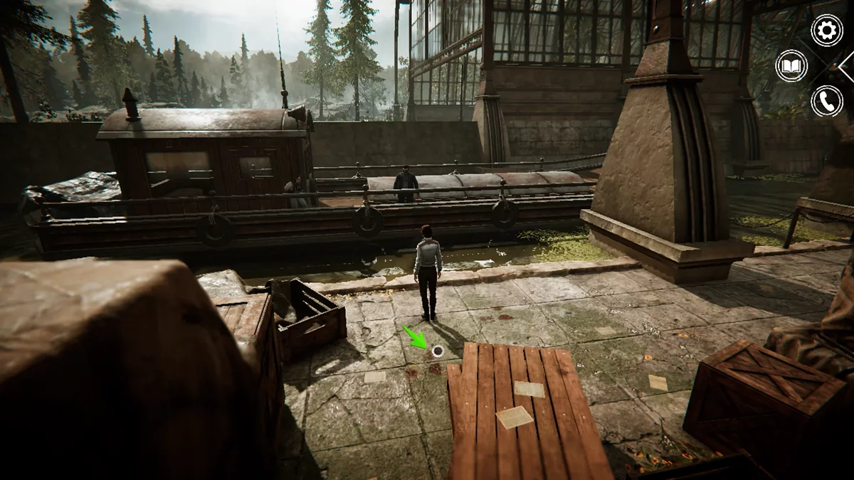 Когда матросы подплывут к шлюзу на барже, снова воспользуйтесь консолью — введите 4 и 1, затем звёздочку, чтобы завершить процесс. После этого пройдите к составу и двигайтесь до конца локации. С правой стороны будет стоять баржа с матросами. Поговорите с ними, чтобы получить цепь, а затем прикрепите к ней крюк. На этом задание завершится.
