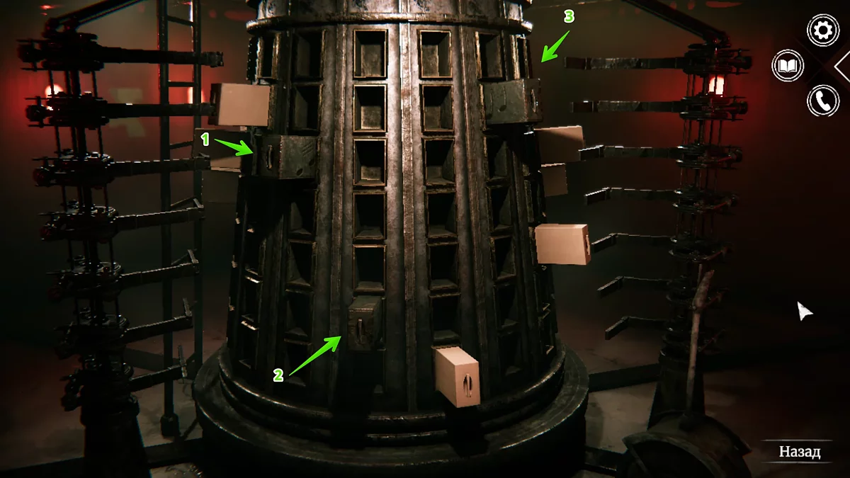 Продолжайте движение вперёд, поднимитесь по следующей лестнице и поверните налево. Найдите приставную лестницу, осмотрите её и подберите книгу о грибах. После этого можно возвращаться в холл: интерактивных объектов в библиотеке больше нет. Поднимитесь по лестнице в аудиторию и осмотрите комнату. Здесь лежит элемент оркестра №1 — не забудьте забрать его.