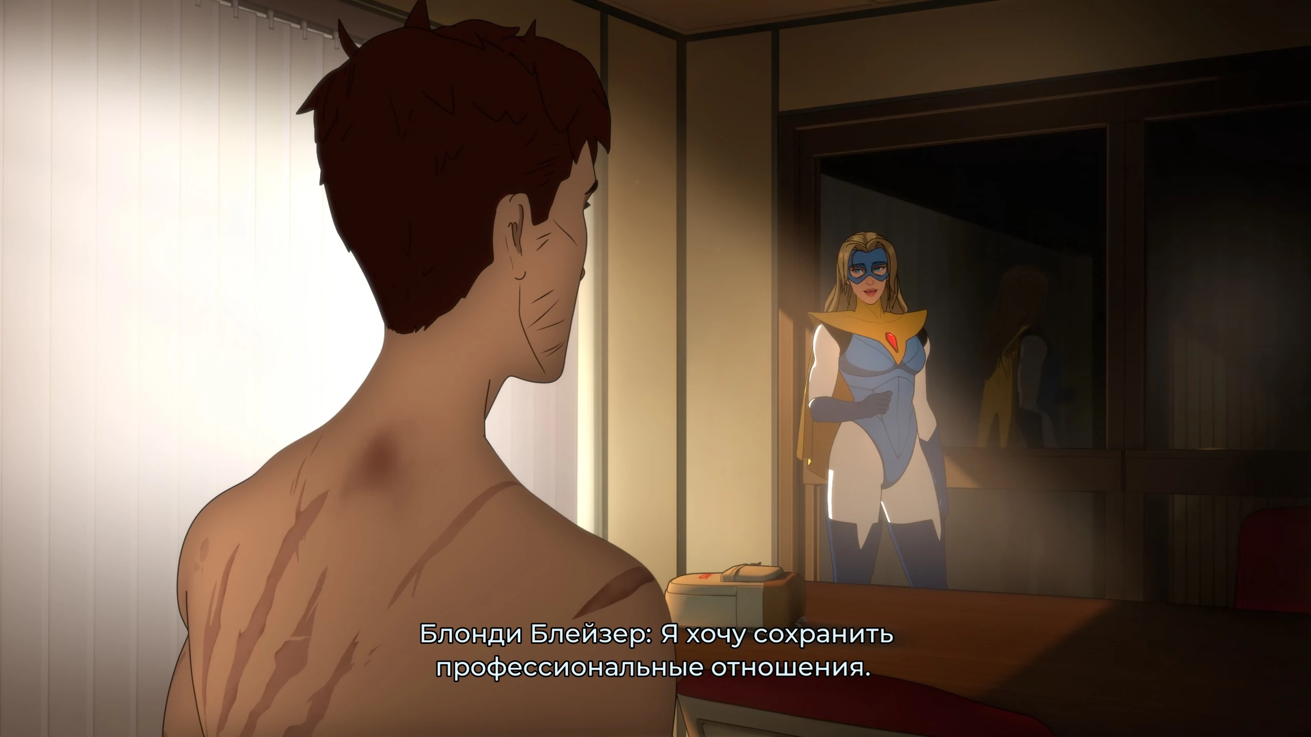 Далее в кабинете Блонды будет разбор полётов. Не вздумайте выбирать варианты «Меня ударила Невидима» и «Она нарушила приказ».
