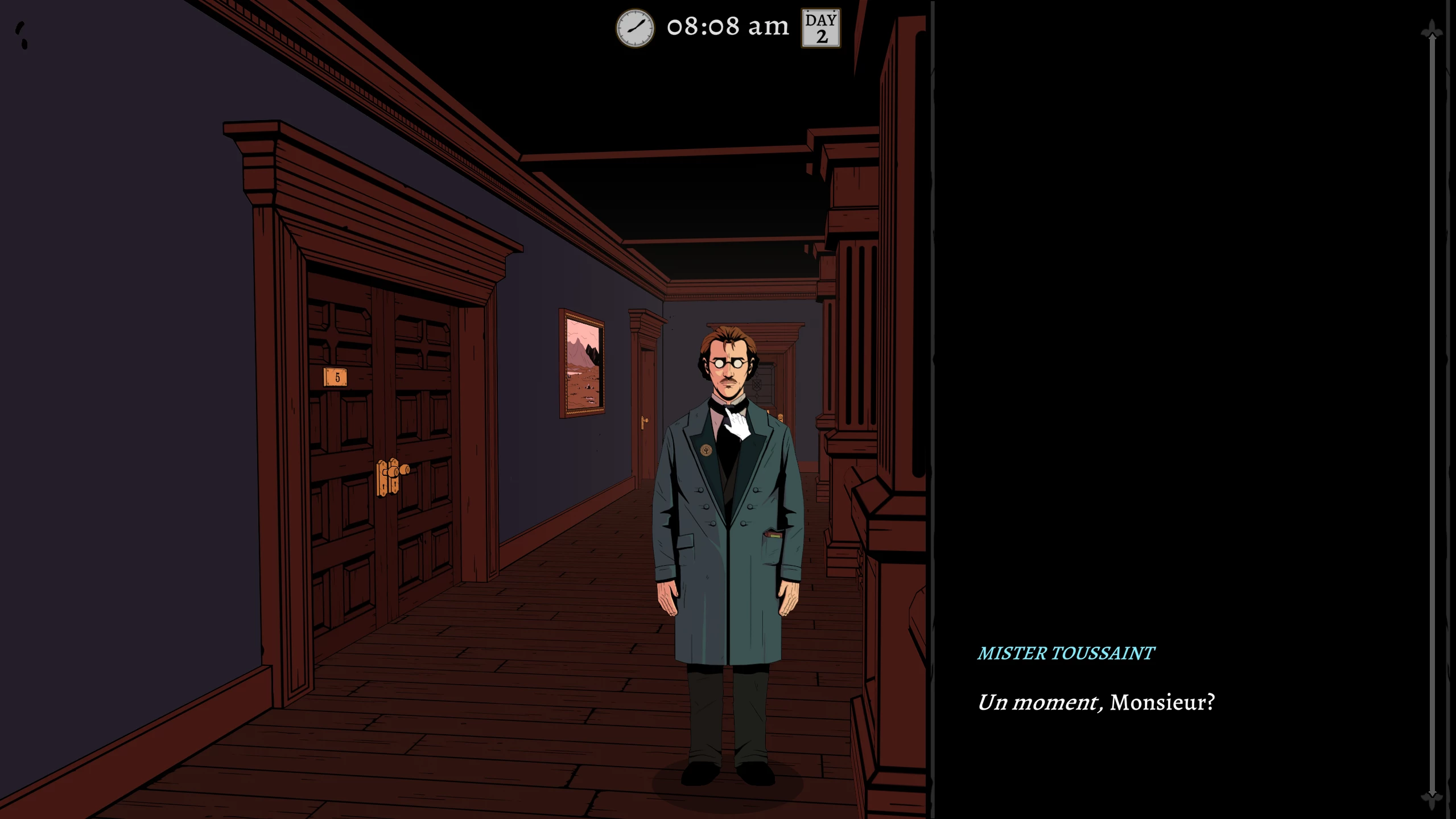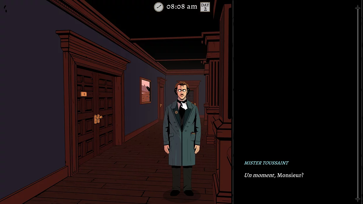 Сразу после знакомства со всеми гостями у двери нас встречает мистер Туссон — французский разоблачитель шарлатанов и единственный человек, который знает о нашей личности.