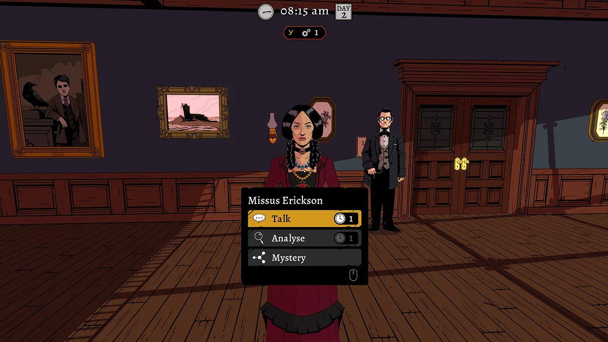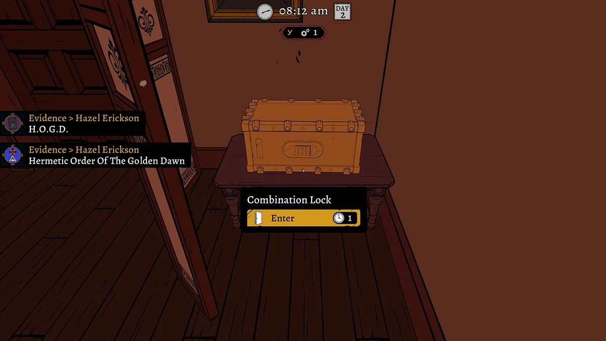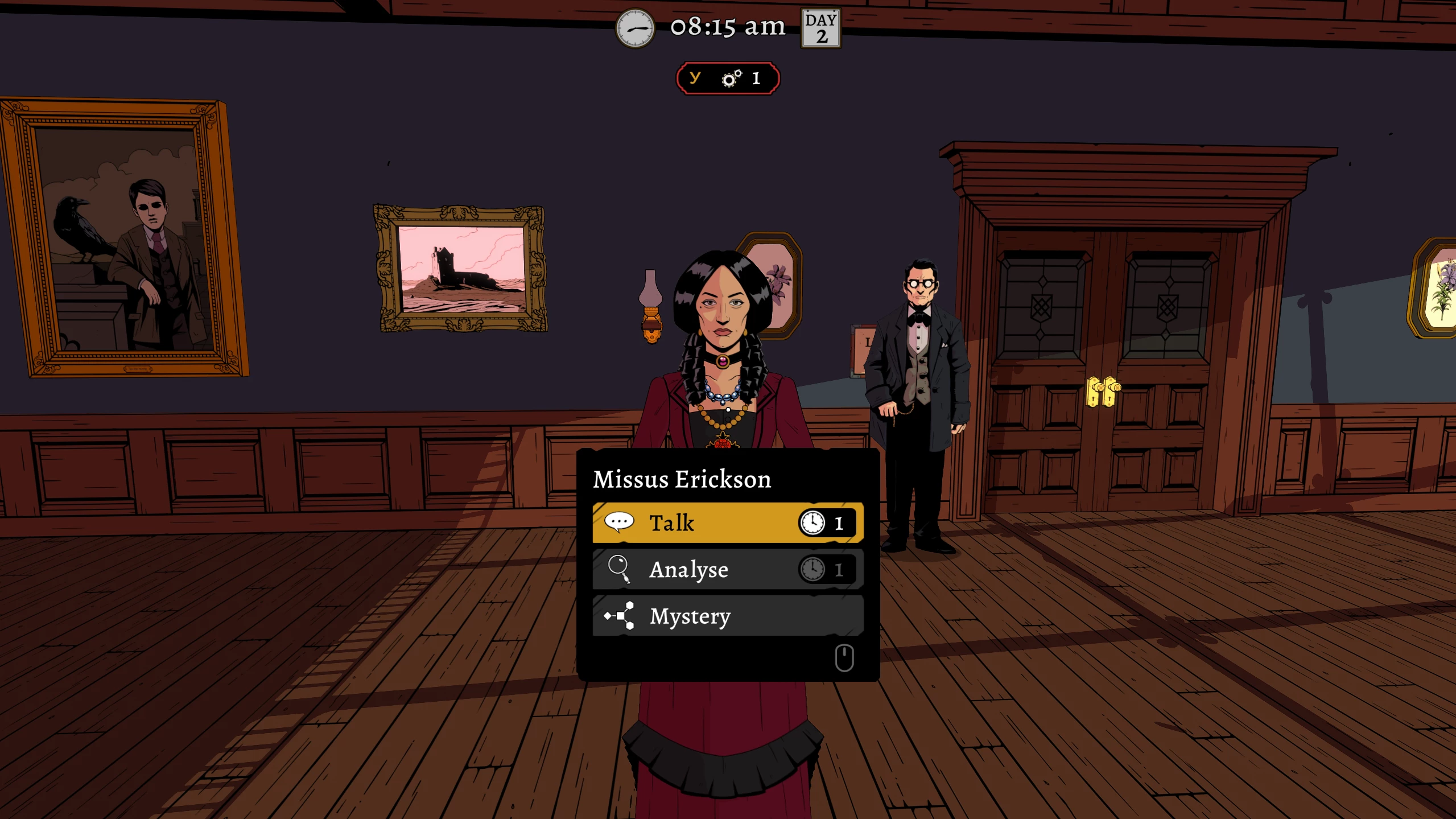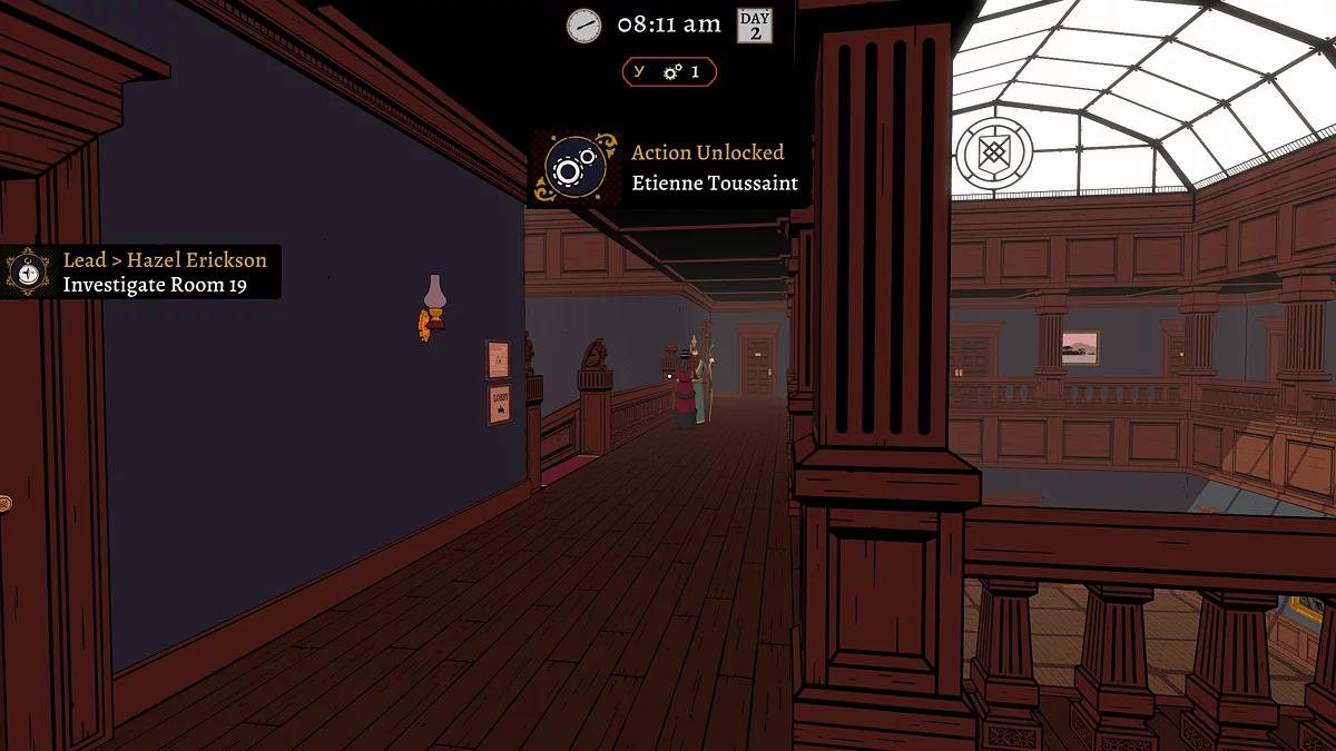 Предъявляем следователю эту мысль с помощью опции «Confront». Детектив Уорд прав, и Туссон просит нас изучить персону мадам Хазель Эриксон. Он дает ключи от ее номера и говорит, что дело нужно закончить в течение часа — иначе сделке конец.