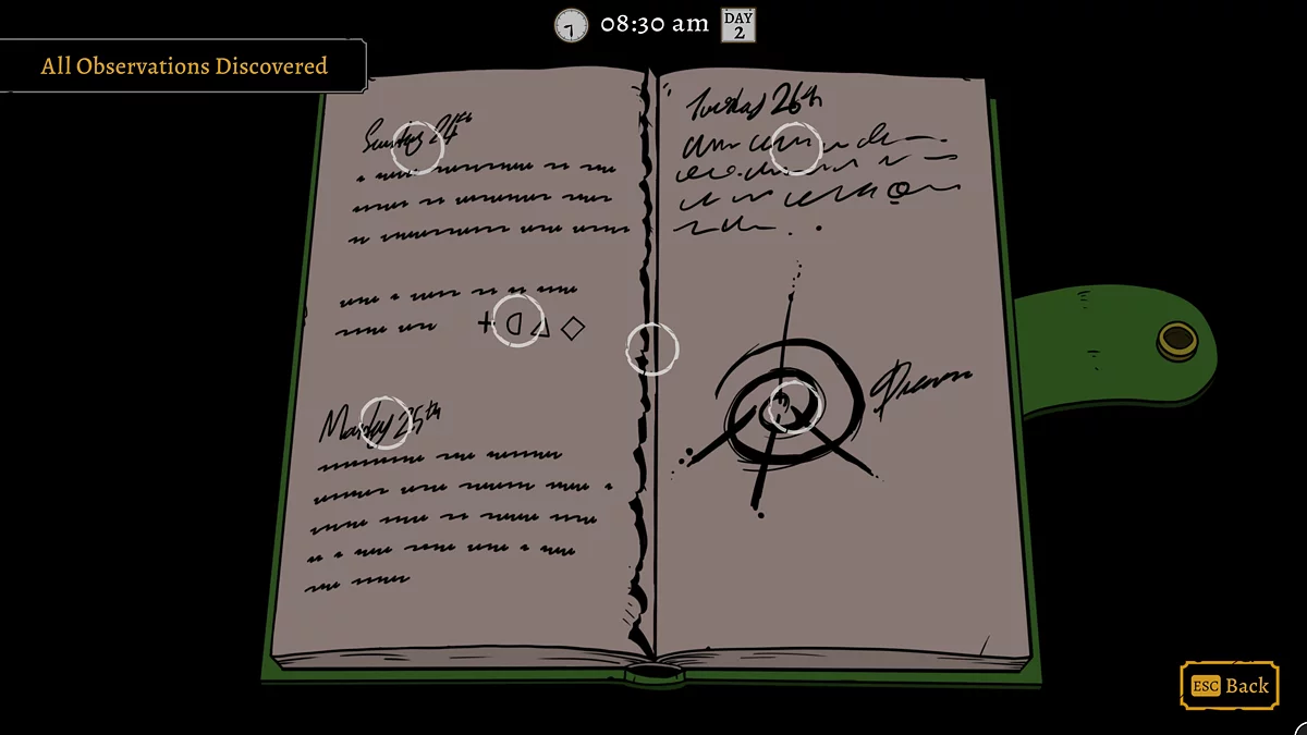 После этого в дневник добавляется улика о странном сне и новая задача дня — найти спальню Эвелин Дин.