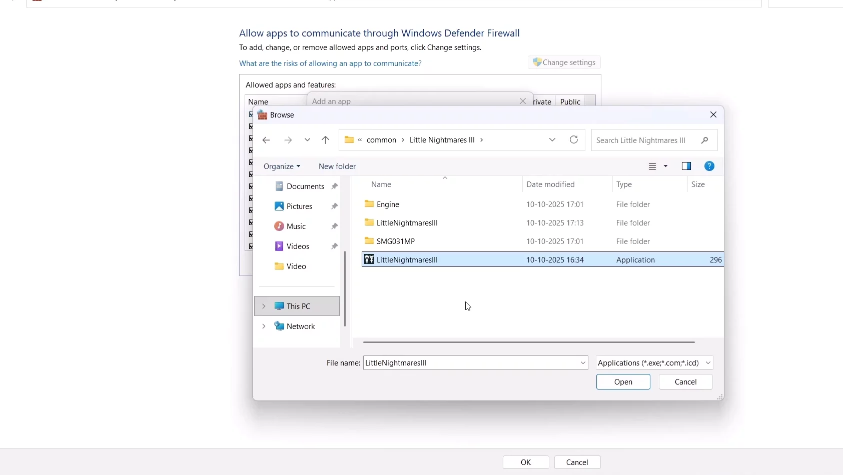 - Добавьте LittleNightmares3.exe из папки игры и Win64\LittleNightmares3.exe.