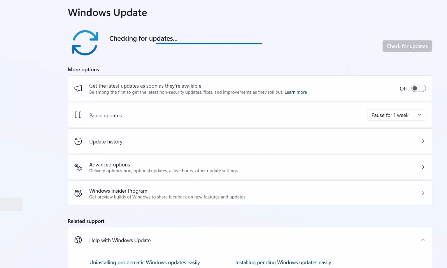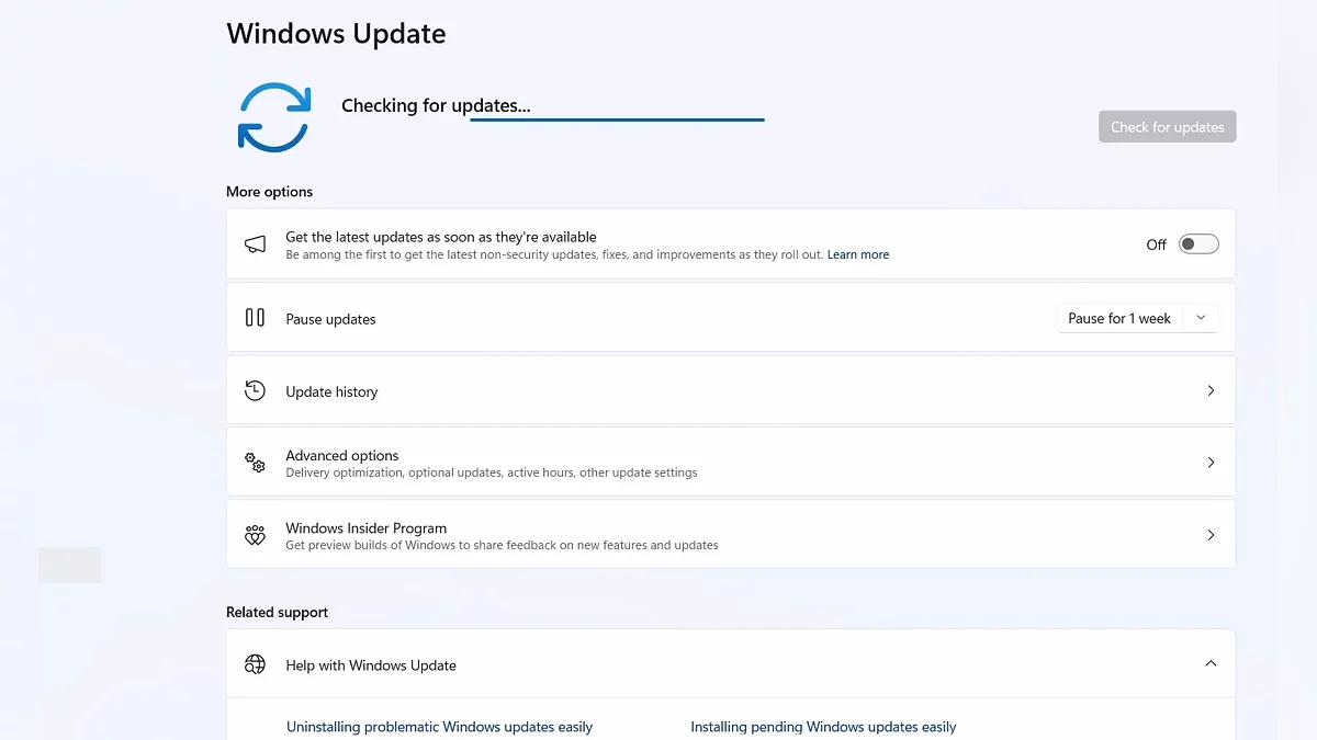 - Нажмите «Проверить наличие обновлений».