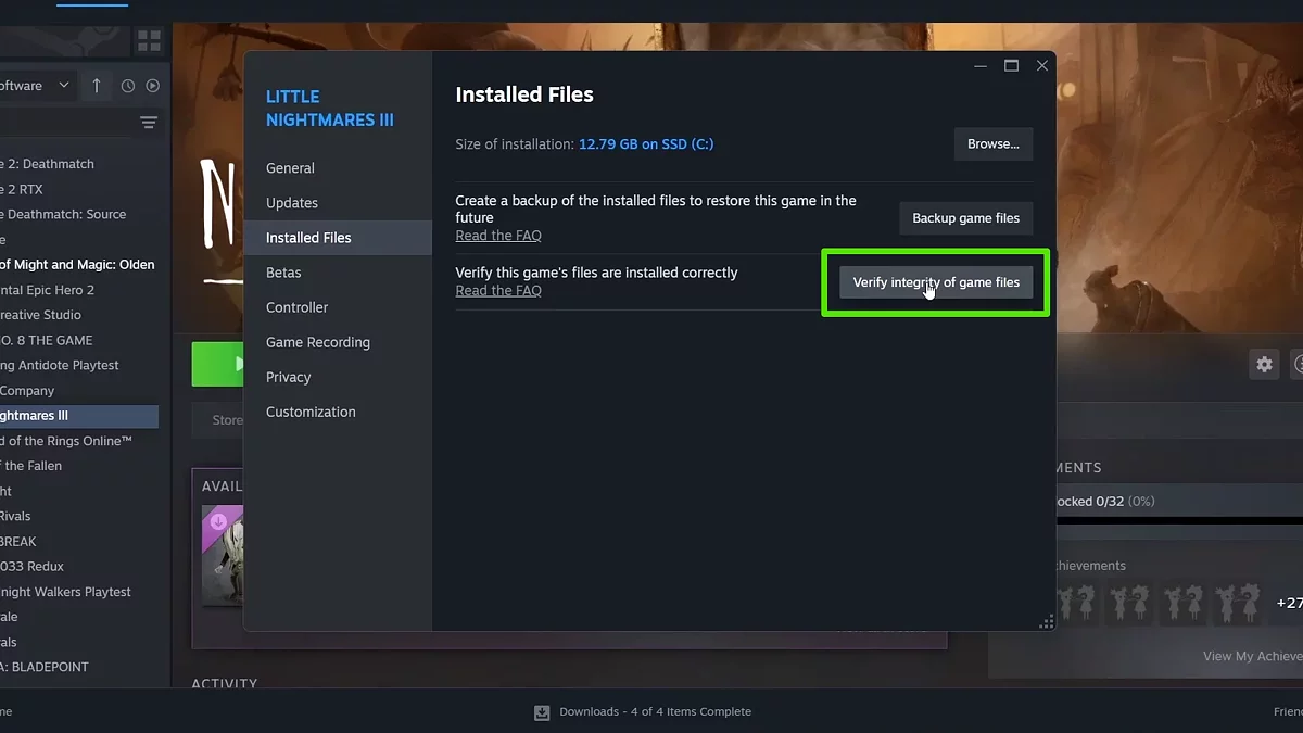 - Щёлкните ПКМ по Little Nightmares 3, выберите «Свойства».