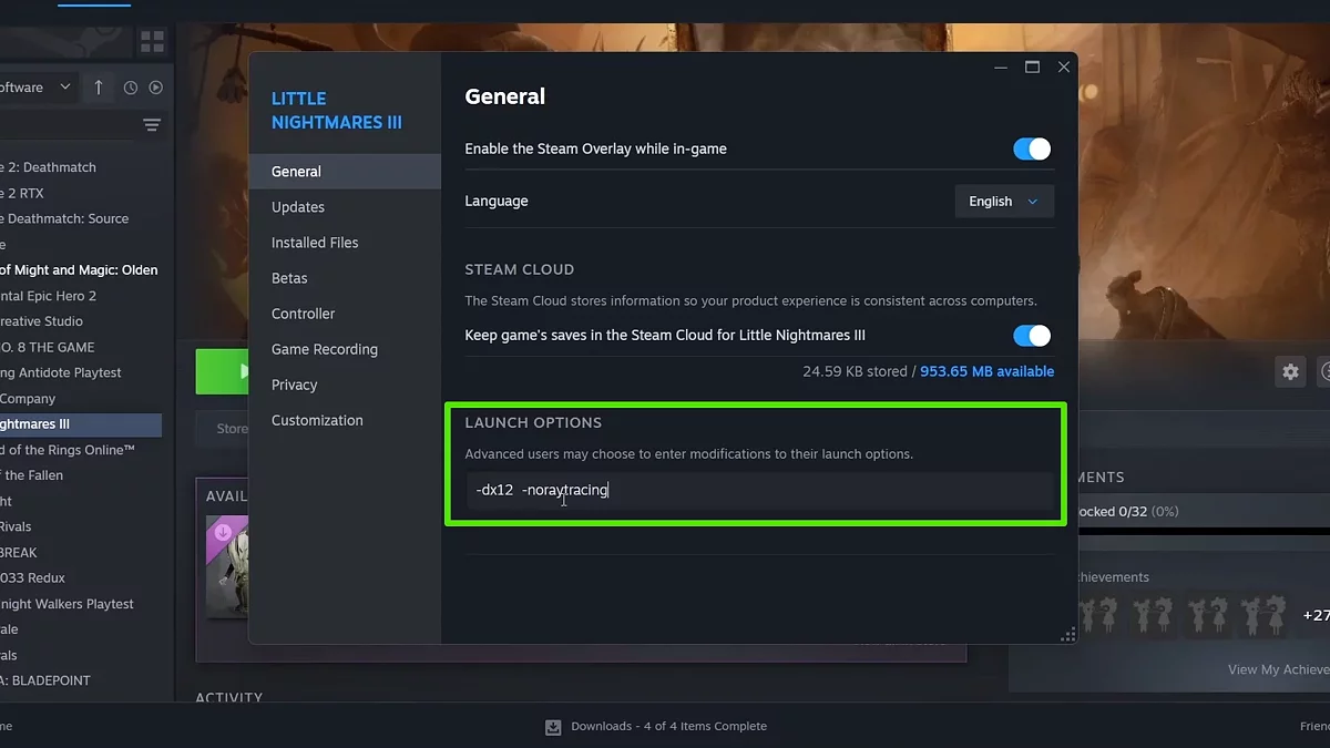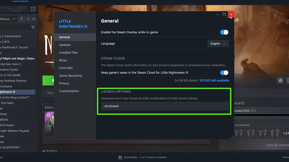 Многие игроки сообщают, что ошибка LowLevelFatalError DXGI исчезает, если запускать игру в оконном режиме. Так как сбой часто происходит до загрузки главного меню, включить этот режим можно только вручную через Steam: Откройте библиотеку Steam, выберите Little Nightmares 3, нажмите ПКМ и кликните «Свойства». В поле Параметры запуска введите: