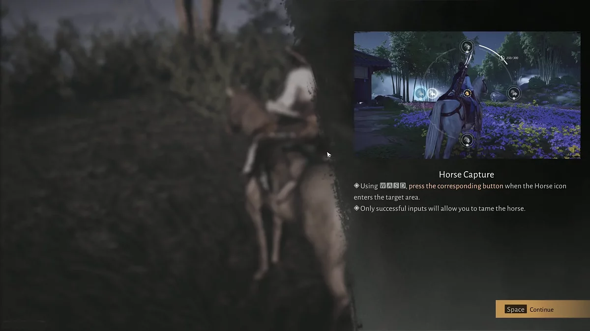 Еще один способ обзавестись ездовым животным в Where Winds Meet — это оседлать дикого коня. Во время исследования мира вы нередко будете встречать таких свободно гуляющих скакунов. Обнаружив дикую лошадь, вы можете попытаться приручить ее.