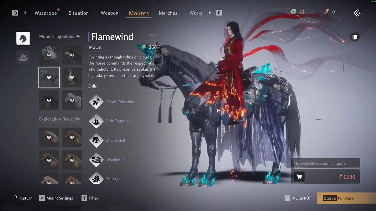 Самый очевидный и простой способ получить лошадь в Where Winds Meet — это купить ее в игровом магазине. Для покупки лошади потребуется одна из игровых валют или реальные деньги. Ниже приведена подробная инструкция: