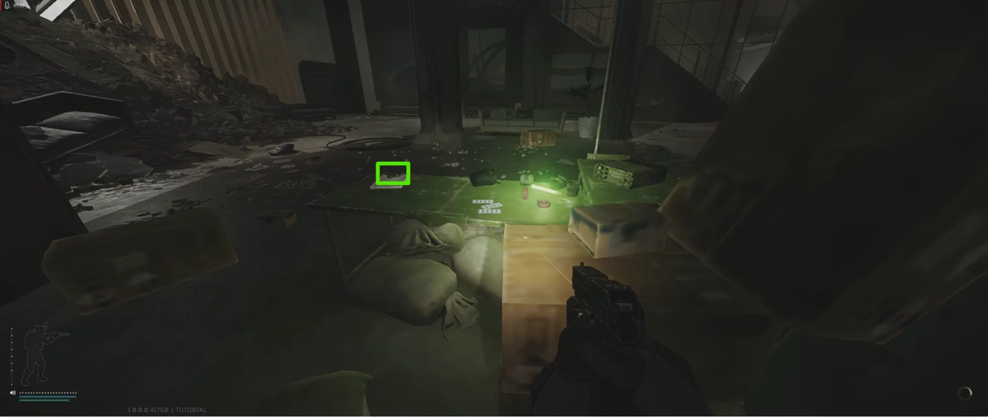 Как только появитесь на карте, осмотрите стол, подберите кассету и прослушайте её. Можете сделать это и позже в схроне. На столе есть медицина, в ящиках неподалёку другой полезный лут.