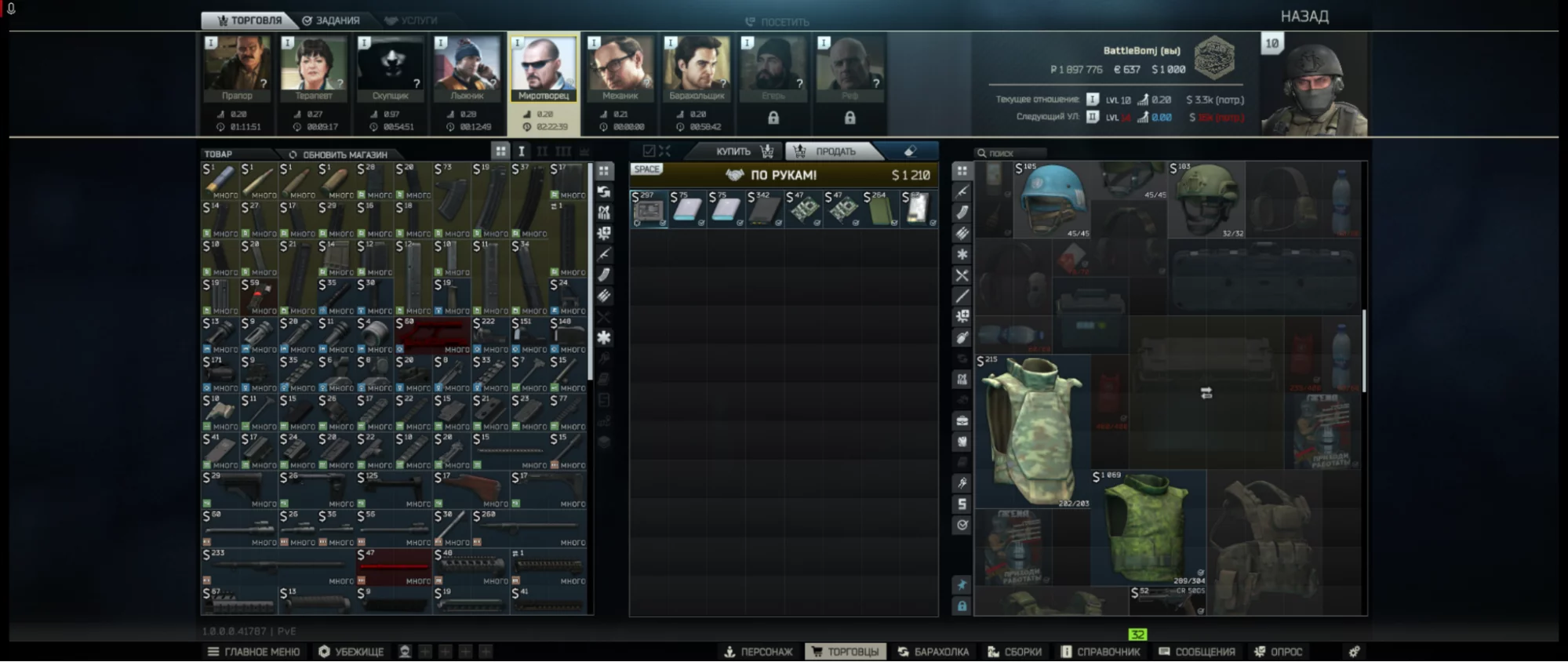 Для этого рекомендуем находить в рейде и продавать элементы техники, по типу защищенных дисков, повербанков, блоков питания, материнских плат и других подобных предметов Миротворцу. Помимо этого, торговец принимает оружие и модули по хорошей цене.