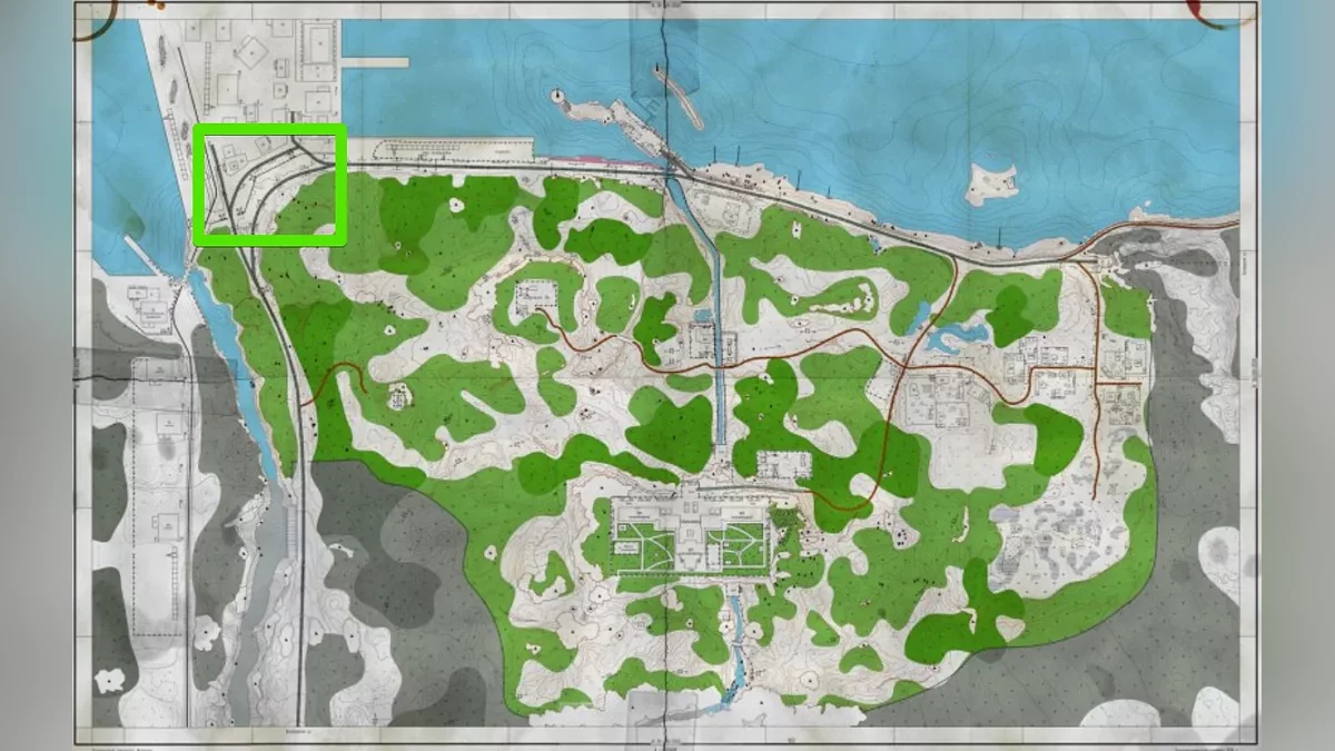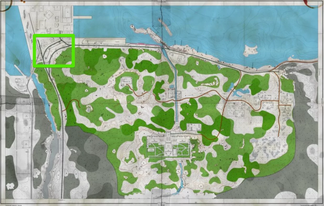 Вход в портовый терминал, как и оказалось, находится на локации «Берег». Вы наверняка уже догадались, о каком объекте идёт речь — огромный терминал у порта в левой верхней части локации, рядом с временным КПП и переходом на Таможню.