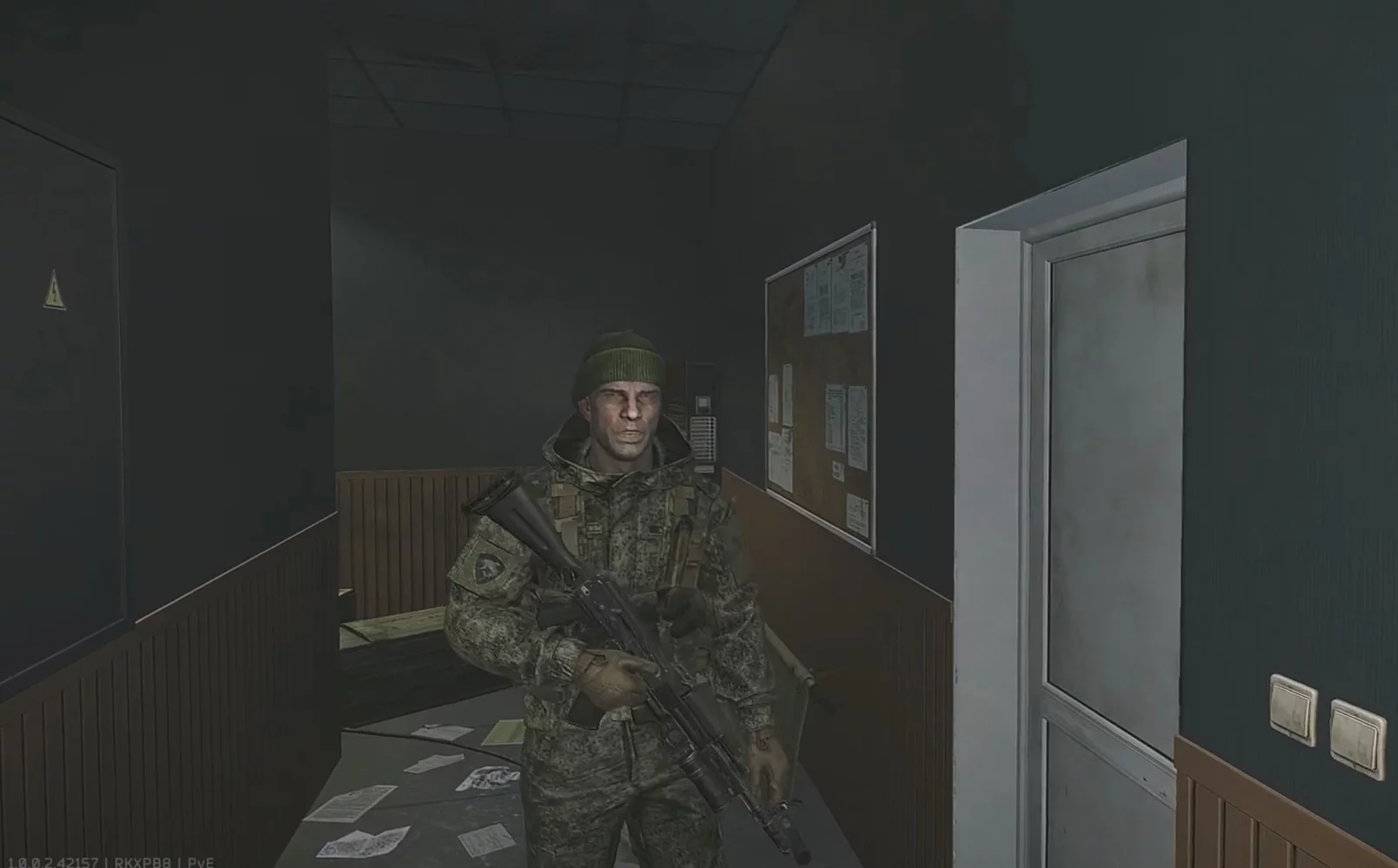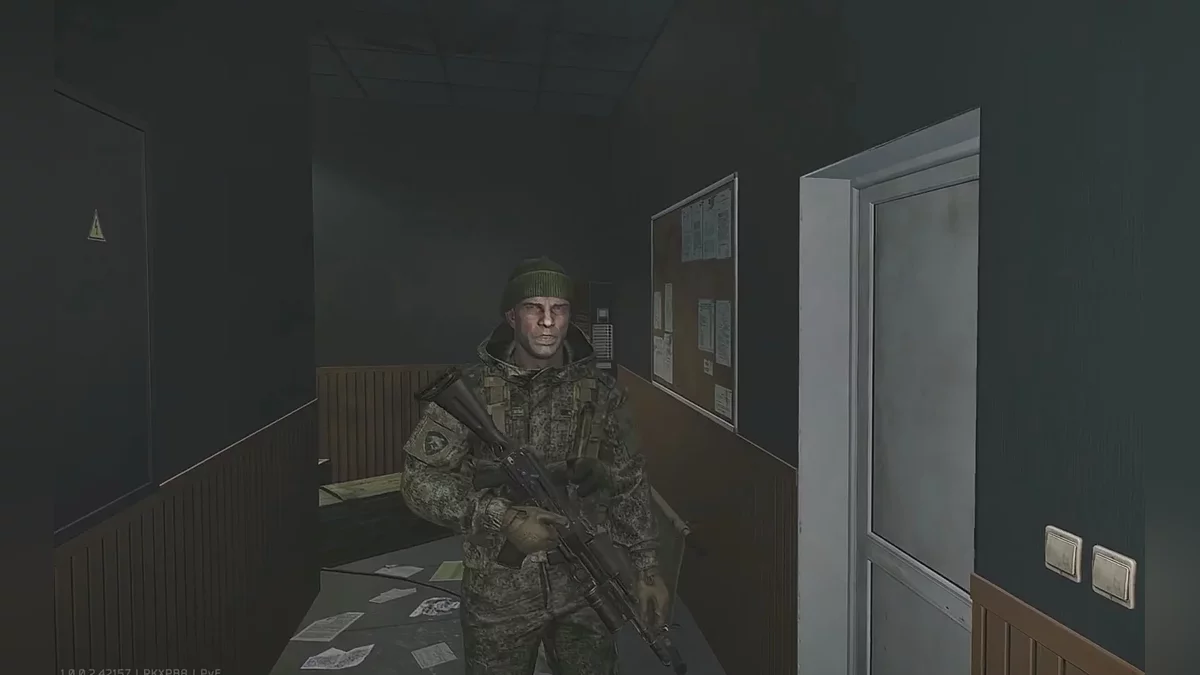 После короткой вступительной катсцены игрока проводят в первое помещение Терминала. Это своего рода «приёмная», где висит карта локации и лежат базовые расходники — вода, еда, аптечки, хирургические наборы, которыми стоит запастись. При входе охрана забирает практически всё снаряжение. Остаётся только бронежилет, разгрузка, шлем и маска. Остальное вы вернёте позже.