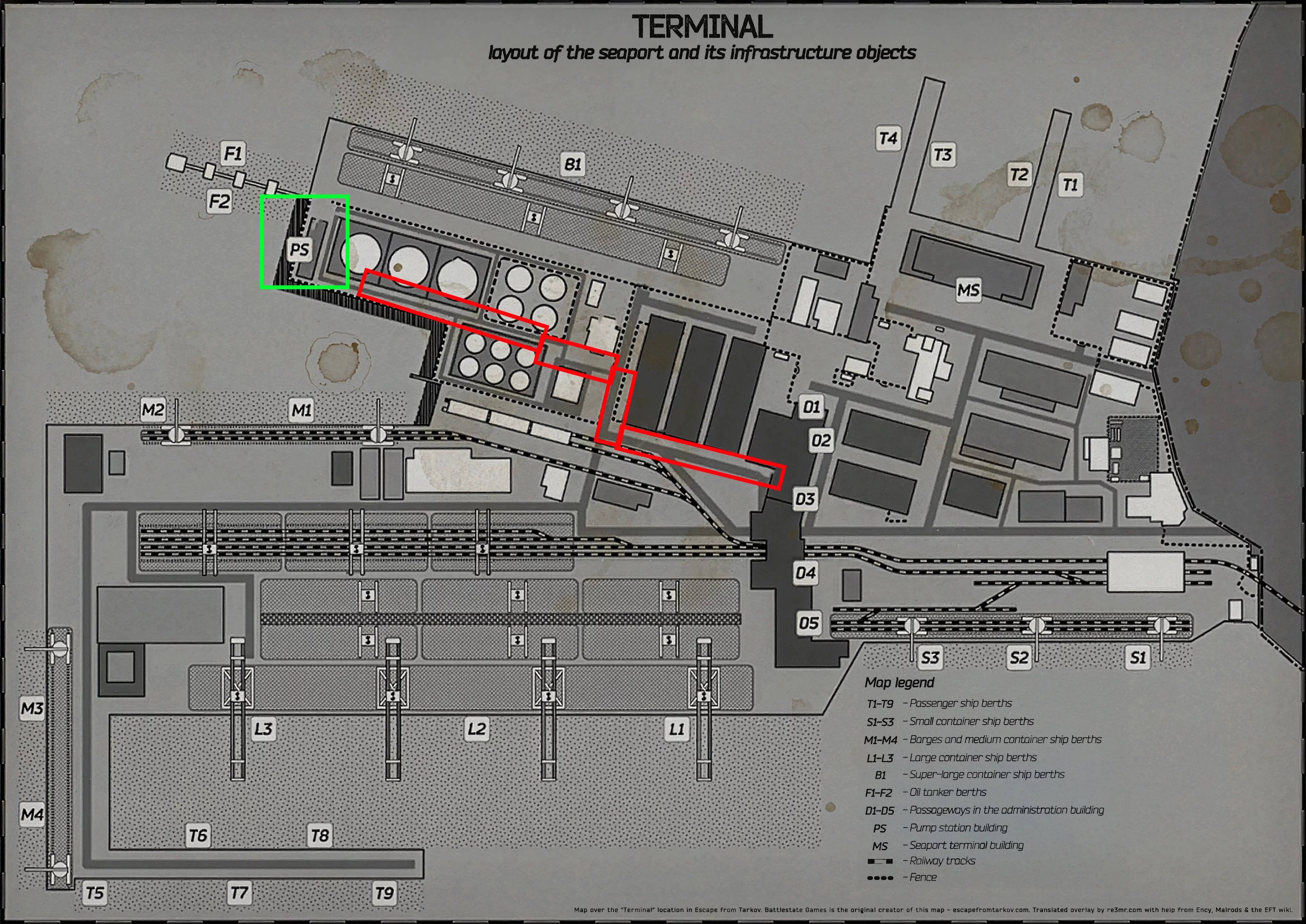 Перейдя через ворота, следуем в западную часть Терминала — туда, где расположена насосная станция. Здесь вас ждёт один из ключевых этапов: поиск неисправной панели и запуск системы осушения.