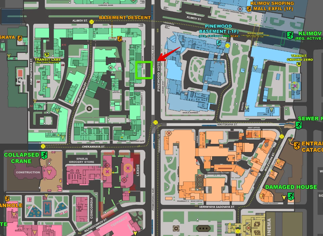 Все выходы на локации «Эпицентр» в Escape from Tarkov -
