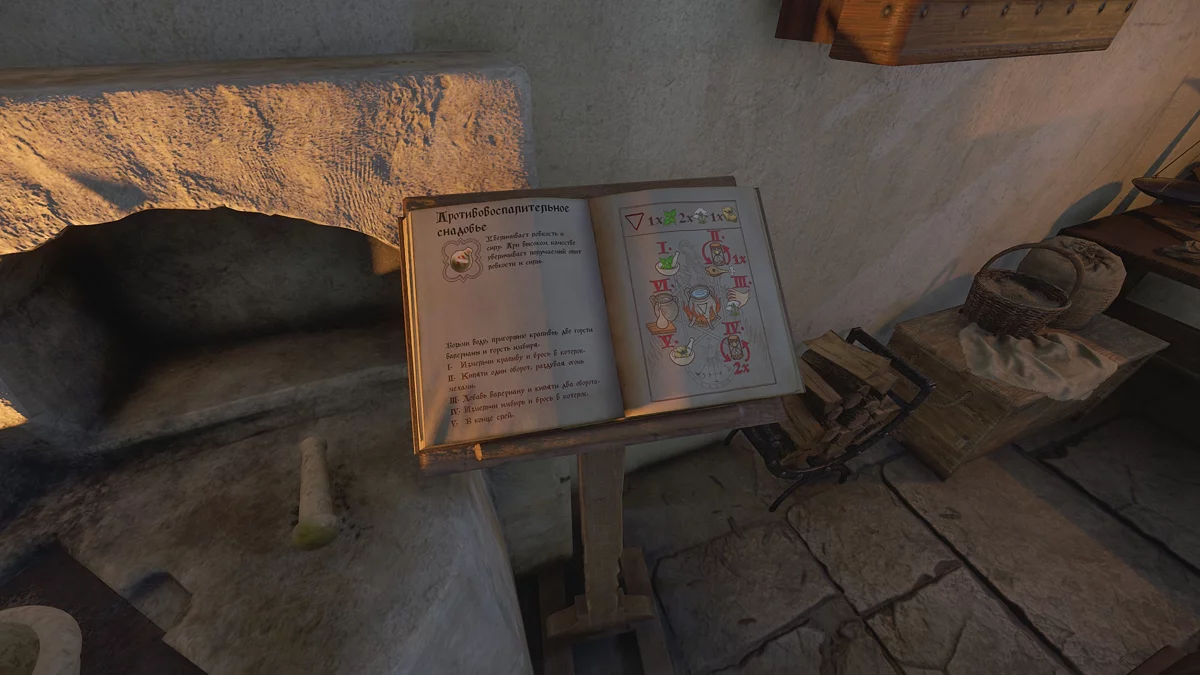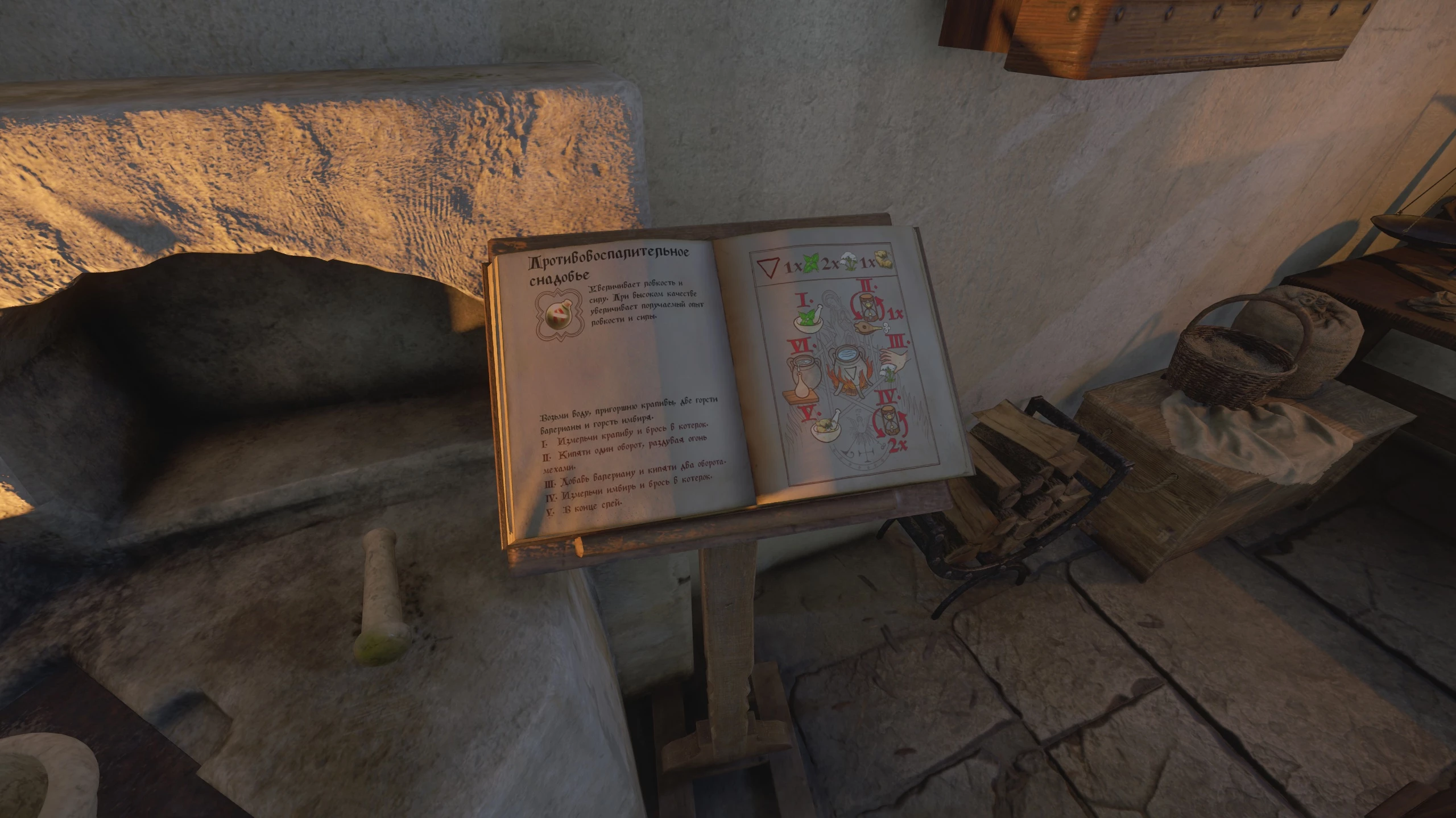Добыв рецепт (неважно, каким образом), отправляйтесь в любой палисадник. Нарвите крапиву, валериану и имбирь, который лежит на столе в доме травника. Вернитесь в лазарет и с помощью алхимического стола сварите противовоспалительное снадобье, следуя этому алгоритму.