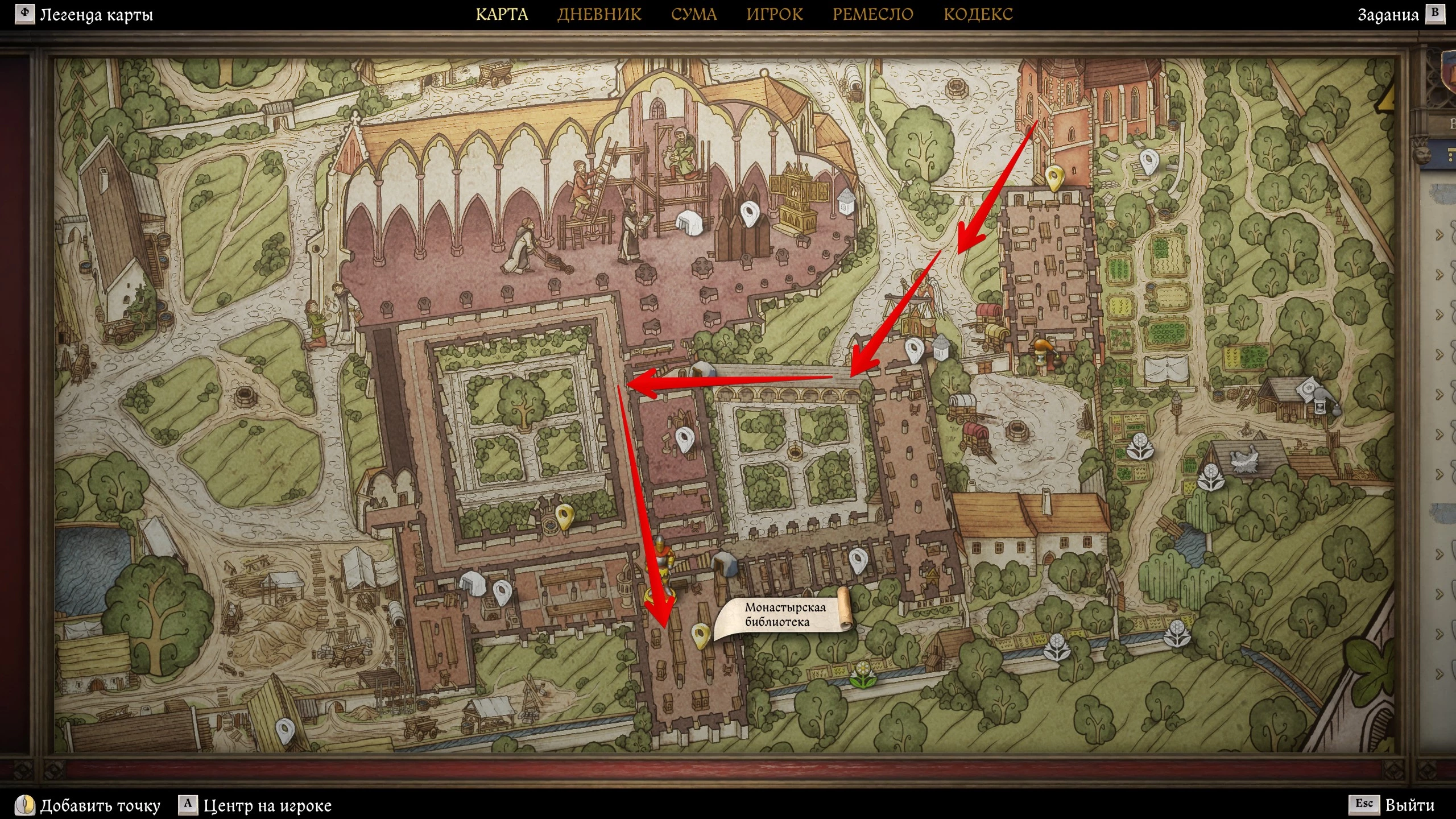 Чтобы попасть в монастырскую библиотеку, следуйте по этому маршруту.