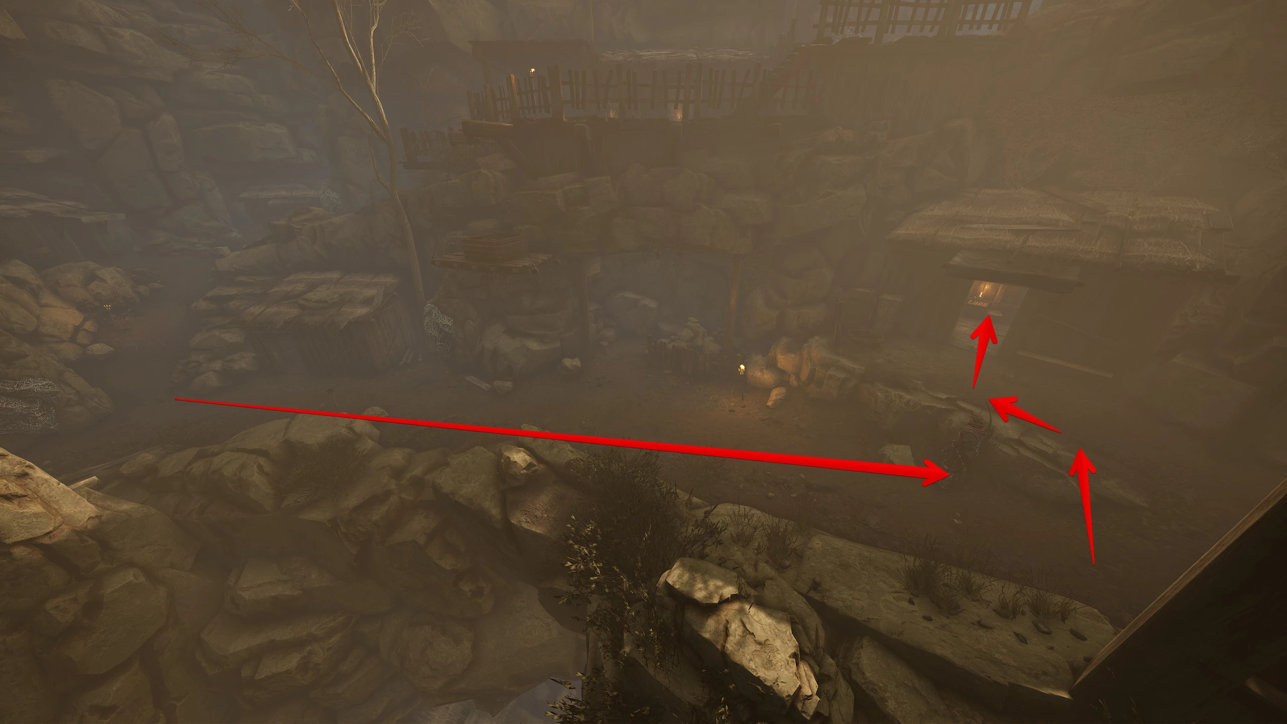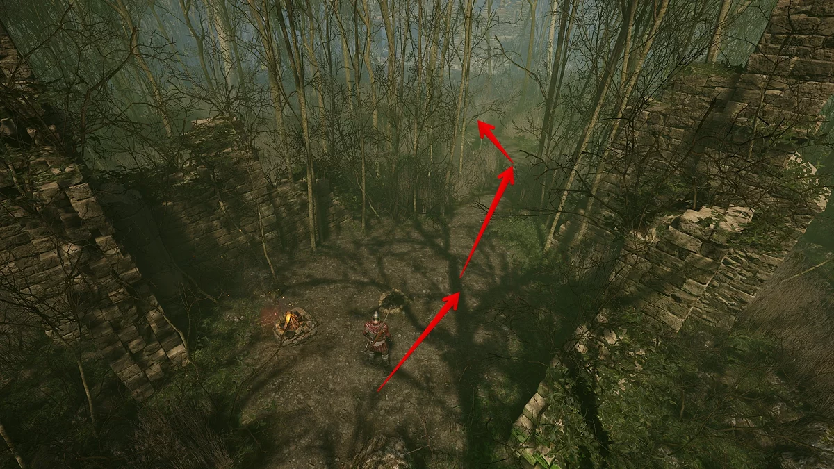 Покиньте город и отправляйтесь на юг, в болота. На первом перепутье идите направо, и окажетесь у двух чередующихся развилок. На первой выбирайте право, на следующей — лево. Так попадете в руины с кострами, где можно разбить лагерь. Советуем подготовиться, потому что впереди вас ждёт серьёзное боевое испытание.